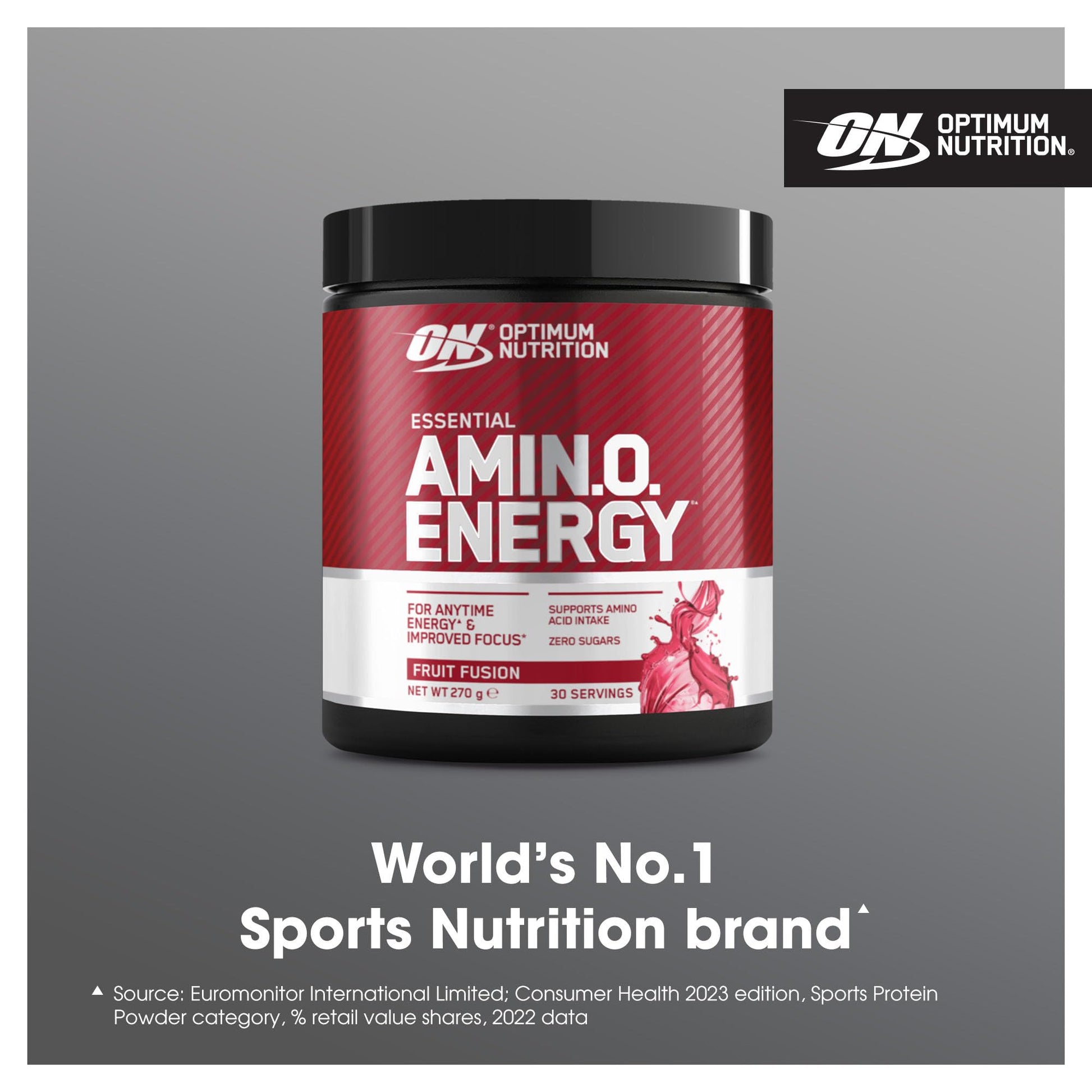 Discover Optimum Nutrition Essential Amin.O. Energy, a ready-to-mix amino acid food supplement powder, designed to boost your energy and focus* before your workout or throughout the day. ON amino acids supplements are scientifically proven to support your energy needs and long-term training. This pre-workout powder is packed with 5 g of micronised amino acids per serving (such as L-Glutamine, L-Leucine, and L-Arginine and BCAAs among others) and supports your daily amino acid intake. Each great-tasting sports drink gives you the edge. It contains green tea and green coffee extracts, plus it provides you with 100 mg of caffeine from natural sources and, thus, contributes to increased alertness and improved concentration.* ON sports drinks are also a source of Vitamin C, which contributes to normal energy-yielding metabolism and supports your immune system.* Plus, its low-calorie count and zero sugar make it a viable alternative to beverages such as cola and coffee. The amino energy food supplement is designed for everyone: from those just starting on their path to leading a healthier lifestyle to athletes, hard-working students, professionals and fitness lovers. Optimum Nutrition Essential AminO Energy is a tasty pick-me-up that doesn’t break the bank and can be enjoyed at any time and anywhere; at home, on the go, or at the gym. Choose between six great tasting options: Fruit Fusion, Lemon Lime, Orange Cooler, Pineapple, Strawberry Lime, or Watermelon. Simply add 2 level scoops (9 g) to 330 ml of cold water, mix, and serve.