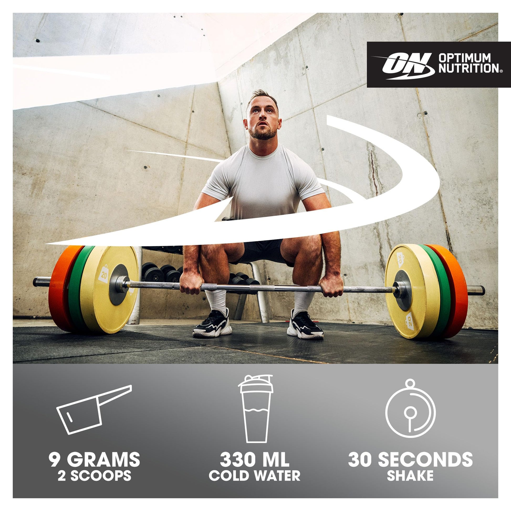 Add 2 level scoops (9 g) to 330 ml (11 oz) of cold water and mix. Recommended consumption of 1 serving per day, either before, during or after your workout