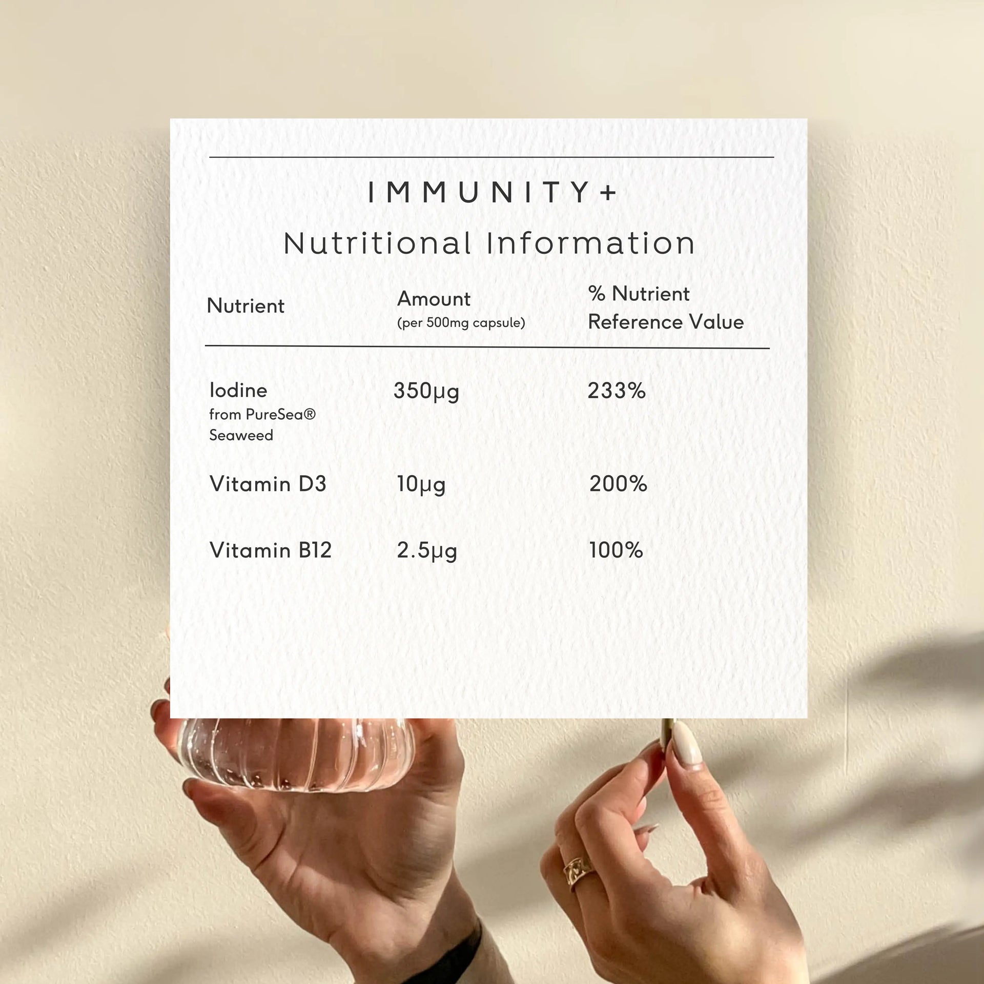 The wide range of nutrients in our seaweed, specifically the organic, natural and plant-based iodine source, have been further enhanced with the addition of organic, plant-based sources of vitamins B12 and D3 to support immunity and wider wellness.