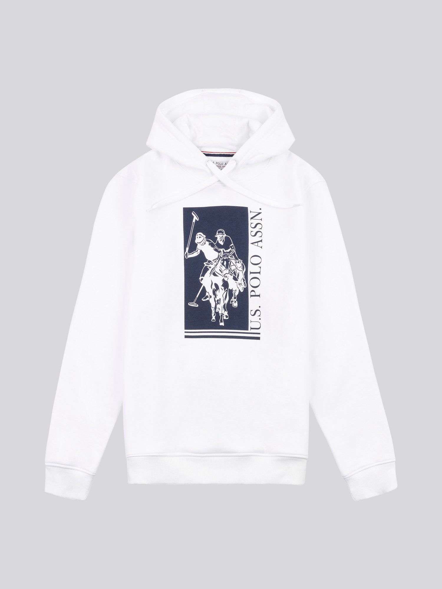 The U.S. Polo Assn. Mens Rider Hoodie is crafted in a soft cotton blend with a simple pullover design making it the champion of style and comfort perfect to wear all year round. The lightweight layer delivers warmth with ribbed cuffs, a hood and drawcords, for a comfortable fit. Finished with a bold double Horsemen sports graphic printed on the chest, for the USPA stamp of authenticity.