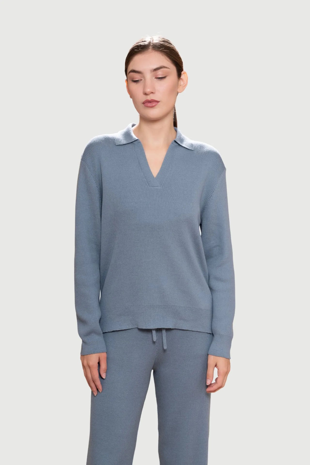 Made in Portugal with exceptional attention to detail, these luxury loungewear trousers pair beautifully with the matching ribbed lounge jumper for a coordinated set, or style them with a crisp tee or oversized knit for effortless versatility.