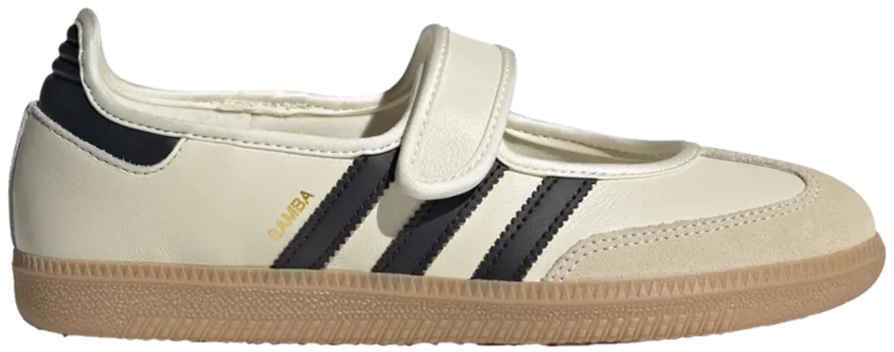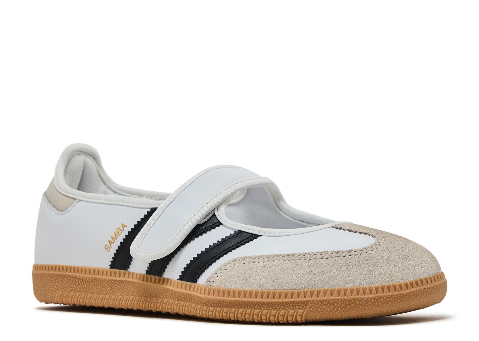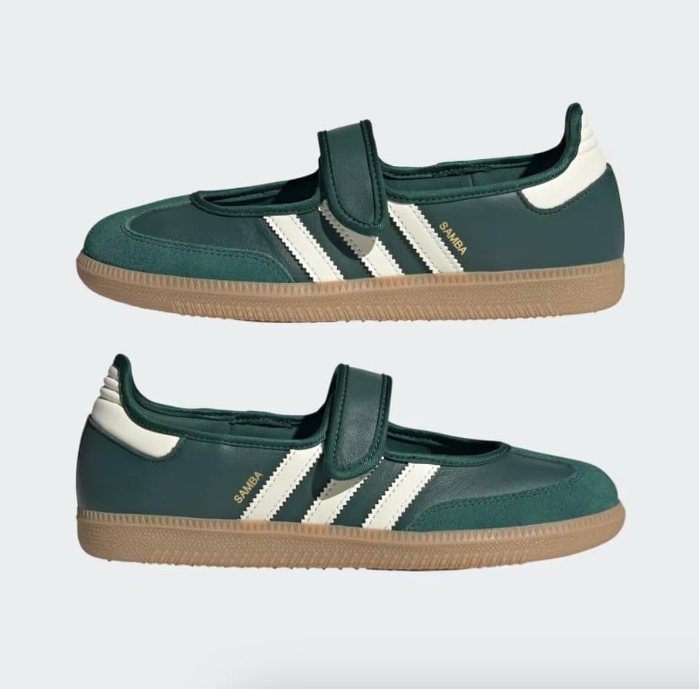 The adidas Samba shoes get a modern makeover, blending into a trendy Mary Jane aesthetic. With a smooth leather upper and signature serrated 3-Stripes, these low-profile shoes offer a fresh take on a heritage style. The smooth satin lining gives the shoes a luxe feel, and a grippy gum rubber outsole keeps the look classic. From indoor trainer to streetwear staple, the Samba's legacy continues to grow. Wear