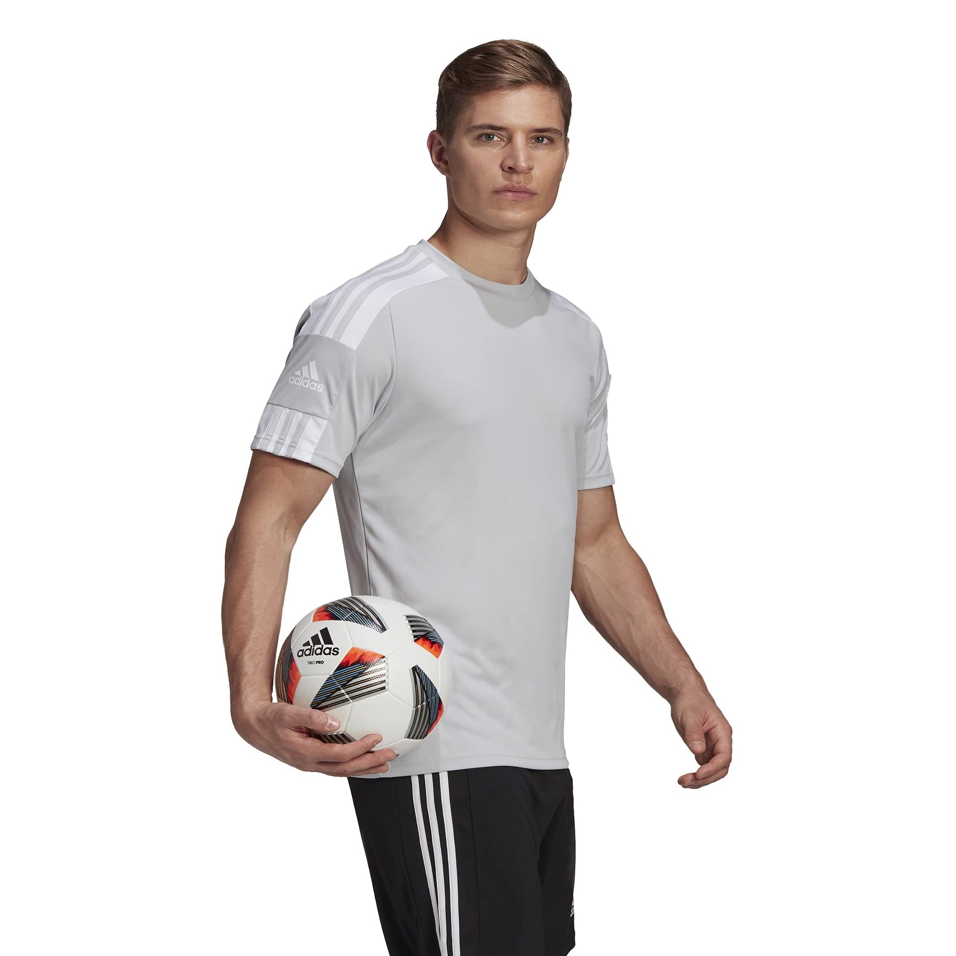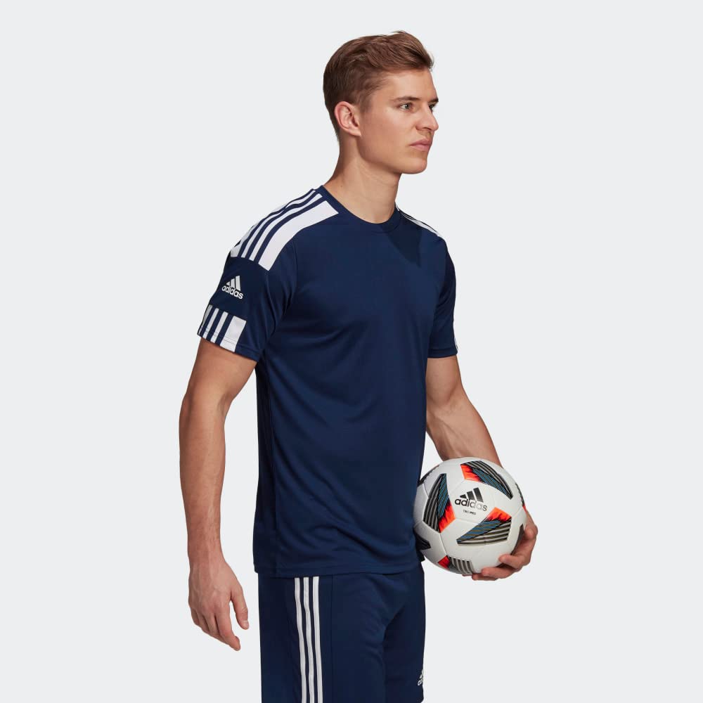 Take on the pitch with confidence in the adidas Squadra 21 Jersey. Built from 100% recycled polyester, this durable short-sleeve jersey keeps you performing at your best with AEROREADY moisture-absorbing technology to stay dry during intense matches. The minimalist crewneck design gives you a clean canvas to showcase your team colours and squad numbers. Engineered with Primegreen sustainable materials, you'll look sharp whilst making an eco-conscious choice. Regular fit for unrestricted movement—because winning in style starts with the right kit.