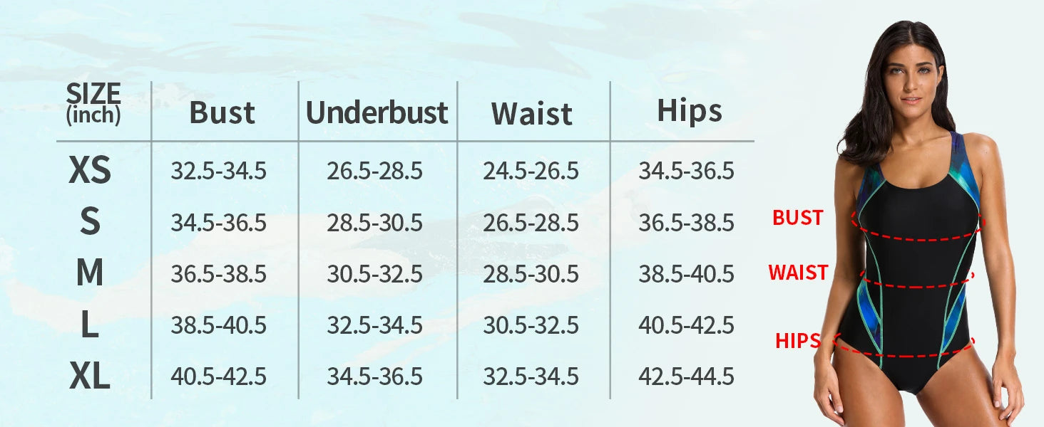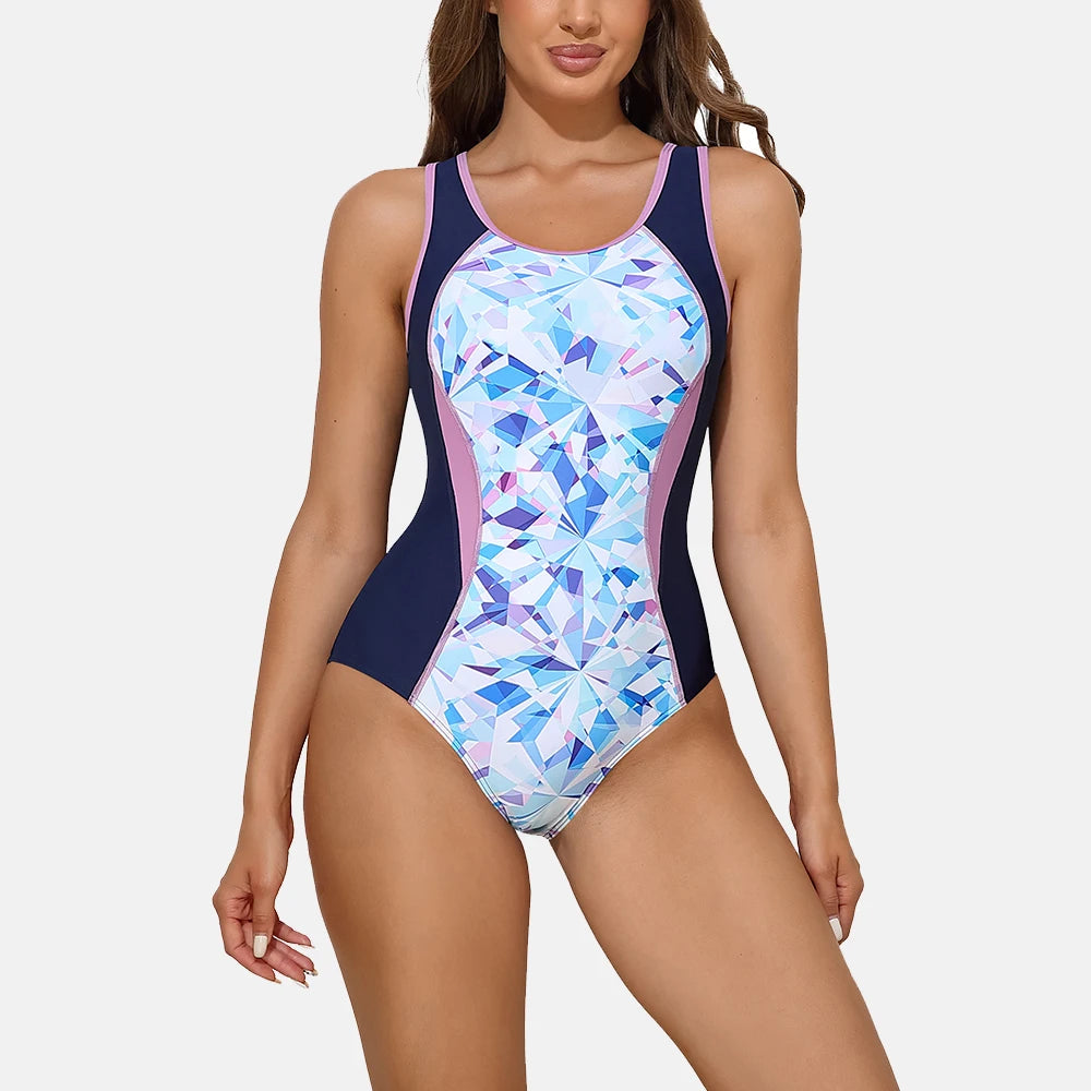 Attraco Women Sports One-piece Full Lining Racerback Unique Print Swimwear Pull on