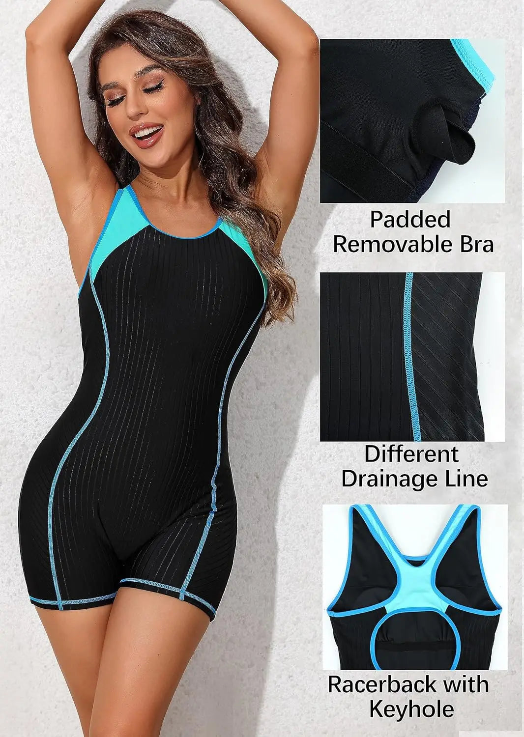 Attraco Women Sports One-Piece Swimsuit Boyleg