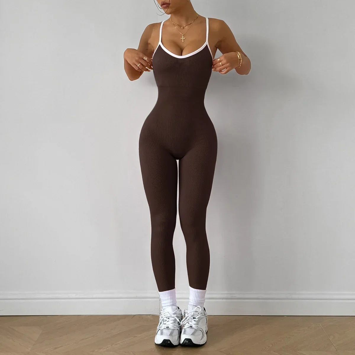 Pink Sports Jumpsuit One Piece Bodysuit Workout Romper