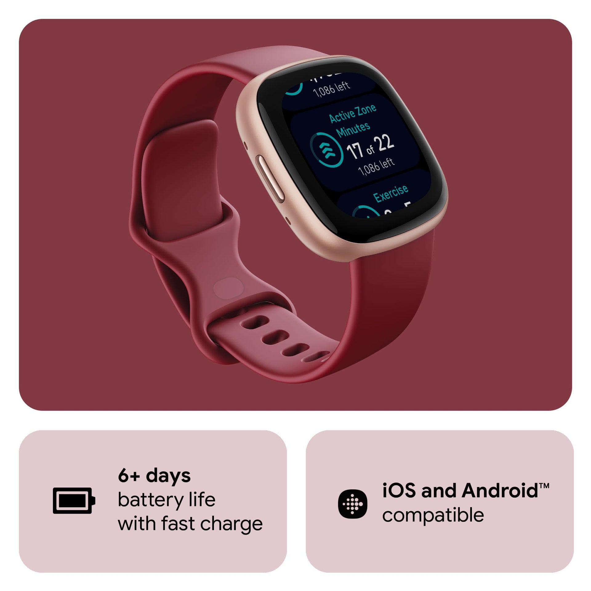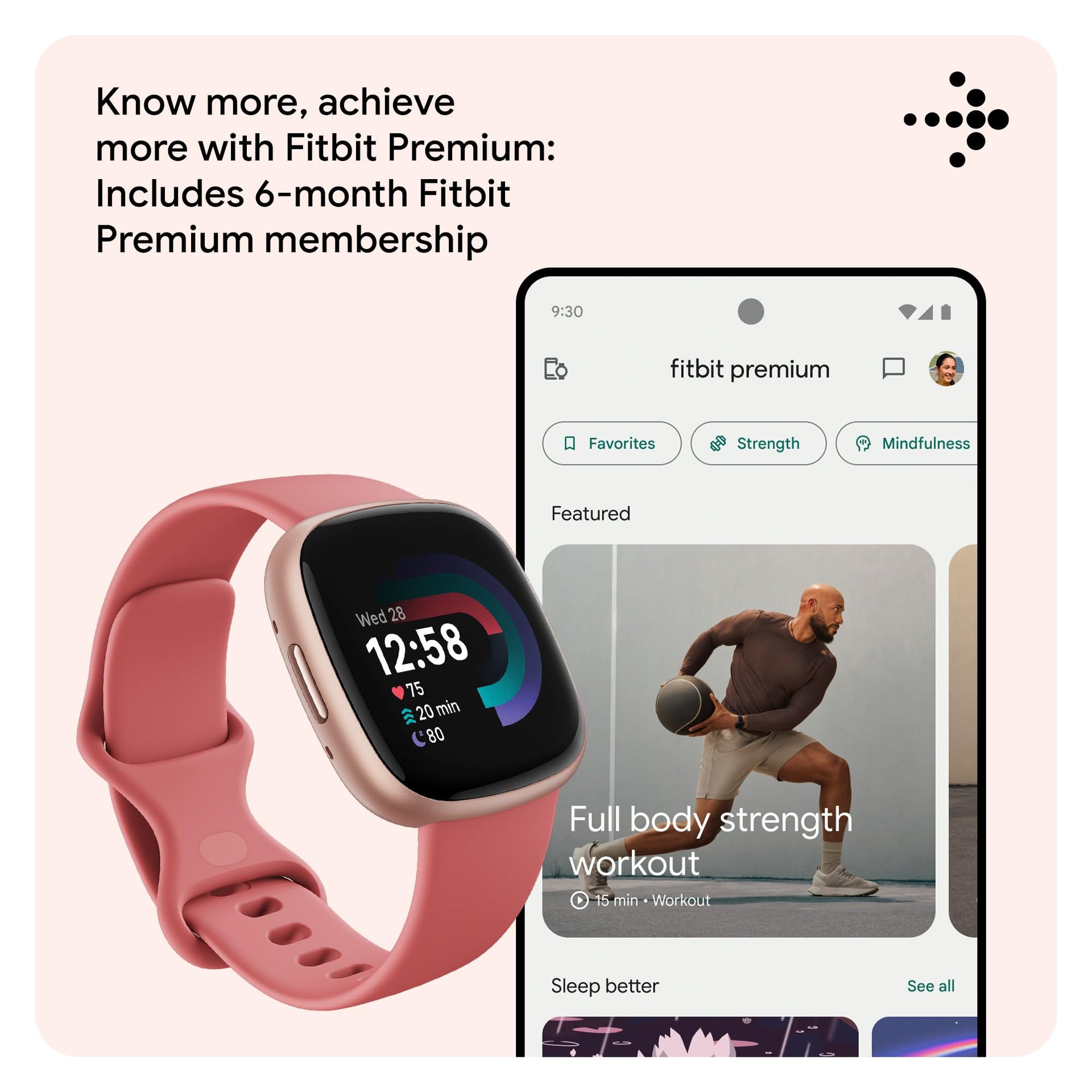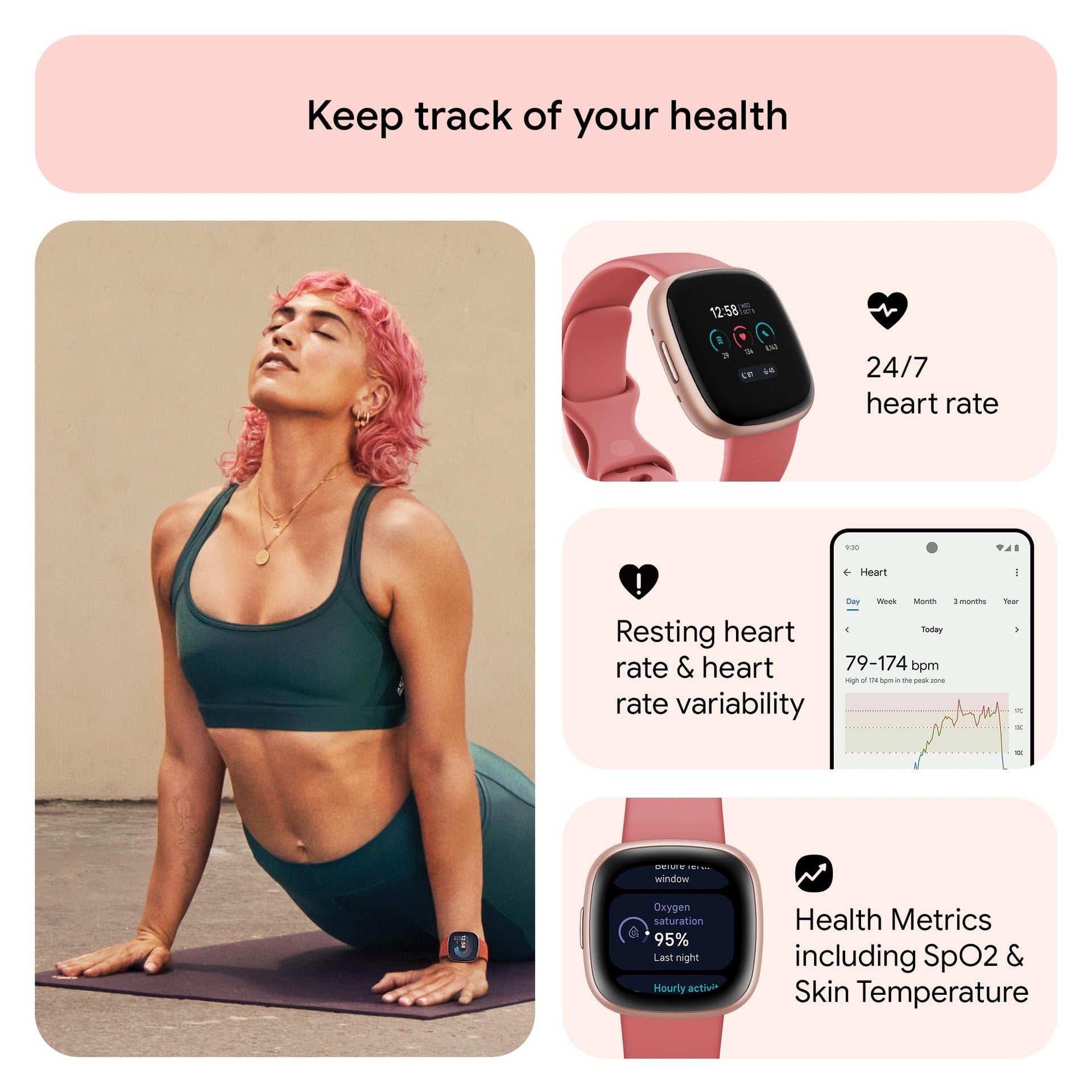 Stay ahead of your fitness game with the Google Fitbit Versa 4! Enjoy over 6 days of battery life and swim confidently with water resistance up to 50m. Compatible with iOS 15+ and Android 9.0+, it tracks everything—from your heart rate and daily activity to 40+ exercises and sleep quality with personalized insights. Built-in GPS maps your workouts and the Daily Readiness Score tells you when to push or rest. Manage stress with guided breathing, monitor SpO2, and keep tabs on menstrual health. Plus, stay connected on the go with calls, texts, notifications, and customizable faces. Includes 6 months of Premium for extra motivation and guidance!