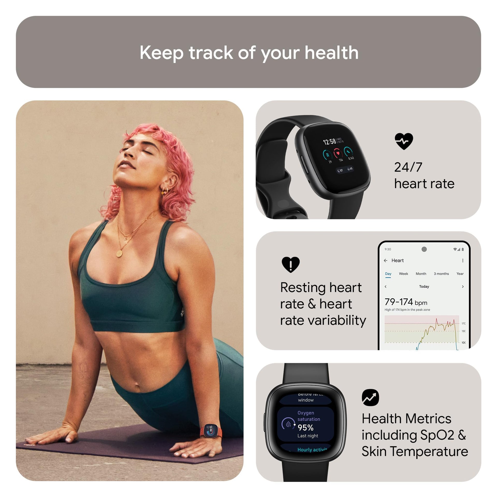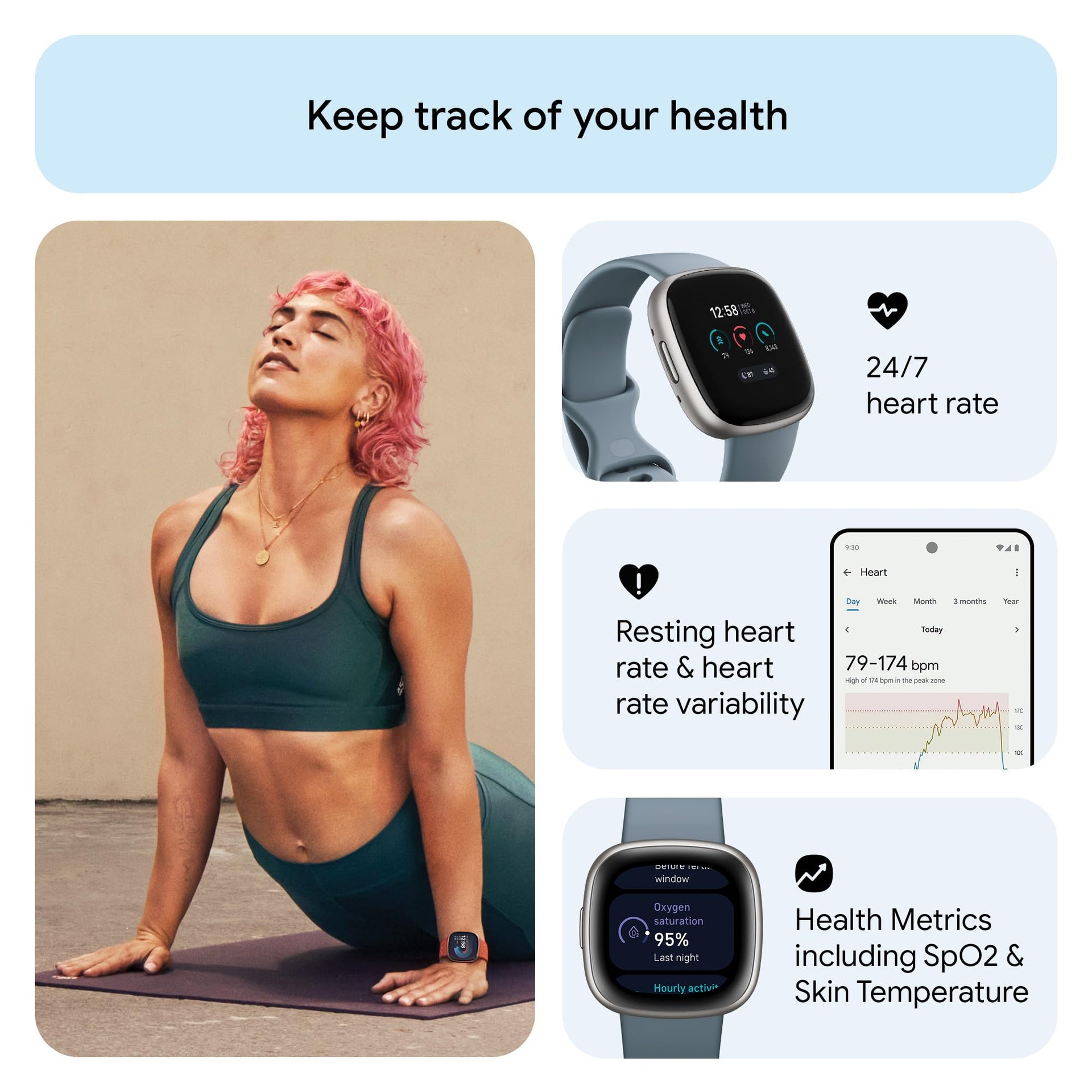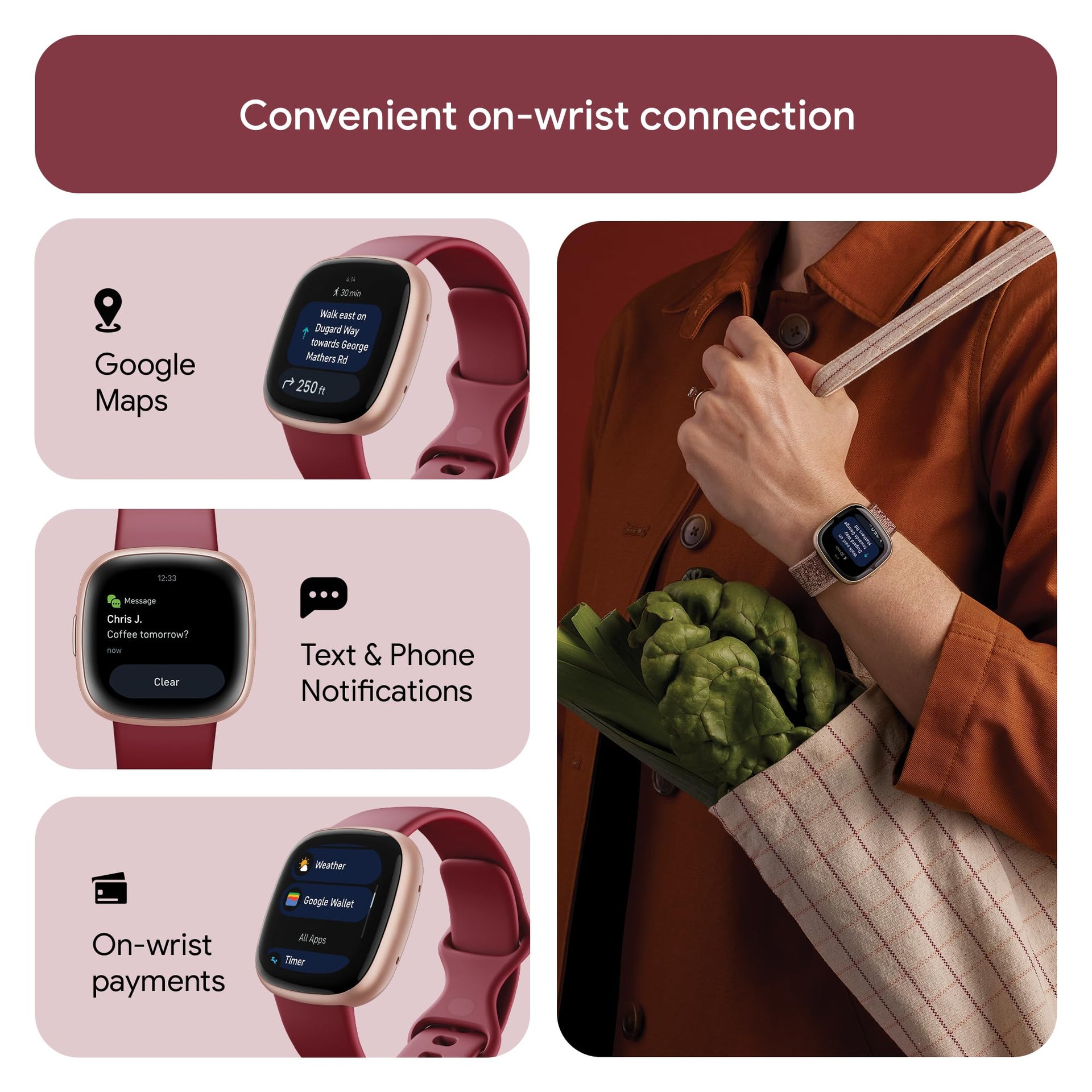 Stay ahead of your fitness game with the Google Fitbit Versa 4! Enjoy over 6 days of battery life and swim confidently with water resistance up to 50m. Compatible with iOS 15+ and Android 9.0+, it tracks everything—from your heart rate and daily activity to 40+ exercises and sleep quality with personalized insights. Built-in GPS maps your workouts and the Daily Readiness Score tells you when to push or rest. Manage stress with guided breathing, monitor SpO2, and keep tabs on menstrual health. Plus, stay connected on the go with calls, texts, notifications, and customizable faces. Includes 6 months of Premium for extra motivation and guidance!