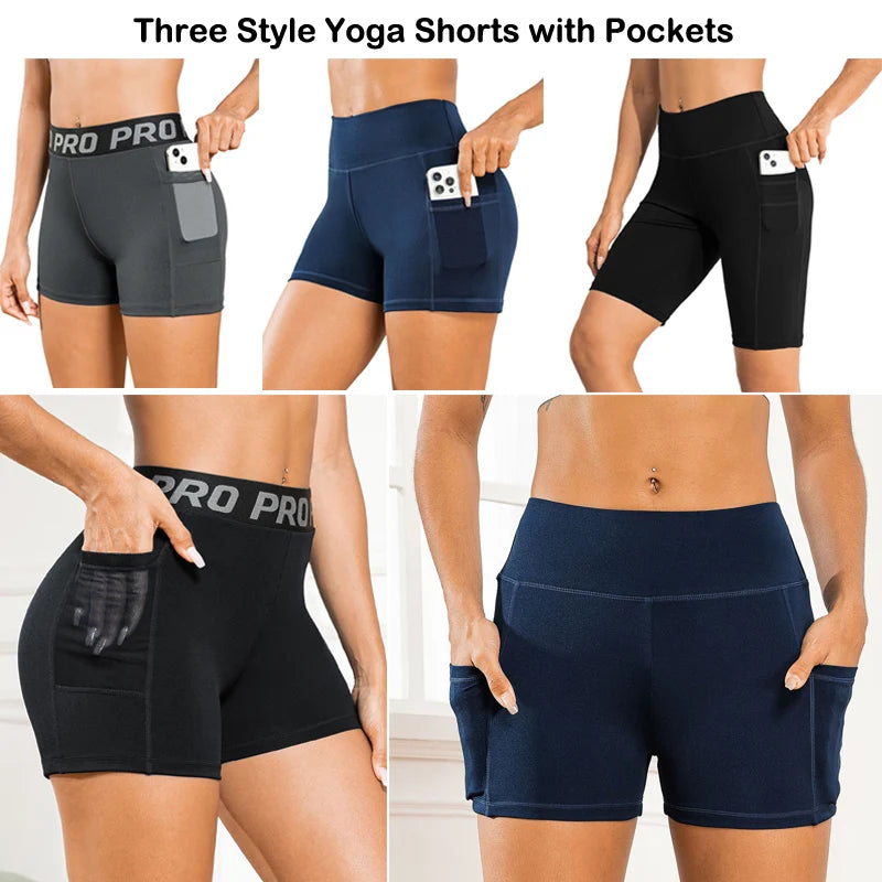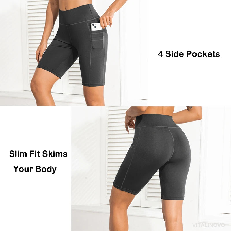 High-Waist Tummy Control Athletic Shorts for Women - Gym, Running, and Yoga Biker Shorts with Pockets