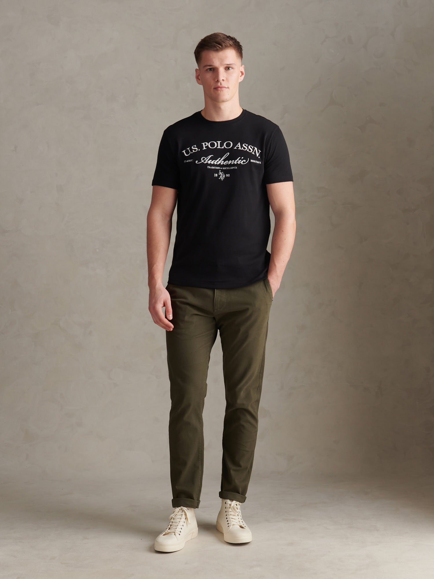Bringing a touch of clubhouse heritage to everyday dressing, the Mens Arch Script Graphic T-Shirt celebrates the brandÕs sport-inspired roots with a clean, considered finish. Cut from smooth cotton interlock with a classic crew neckline, it features an arched chest embroidery and flowing script artwork that nods to traditional collegiate teamwear. Style it with chinos, denim or layered under a lightweight jacket when you want an easy tee that still feels polished.