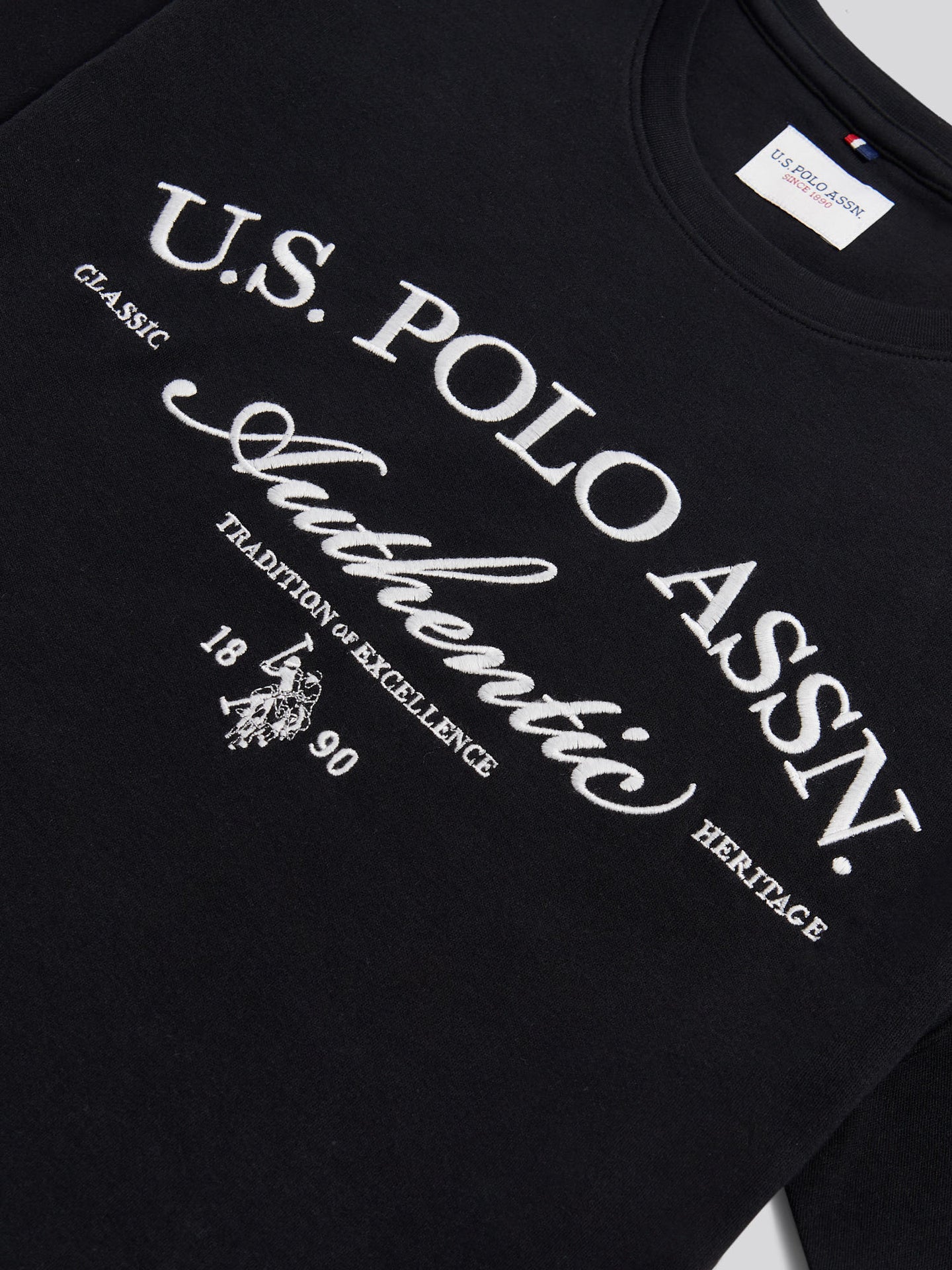 • Heritage arch chest embroidery Refined, sport-inspired focal point