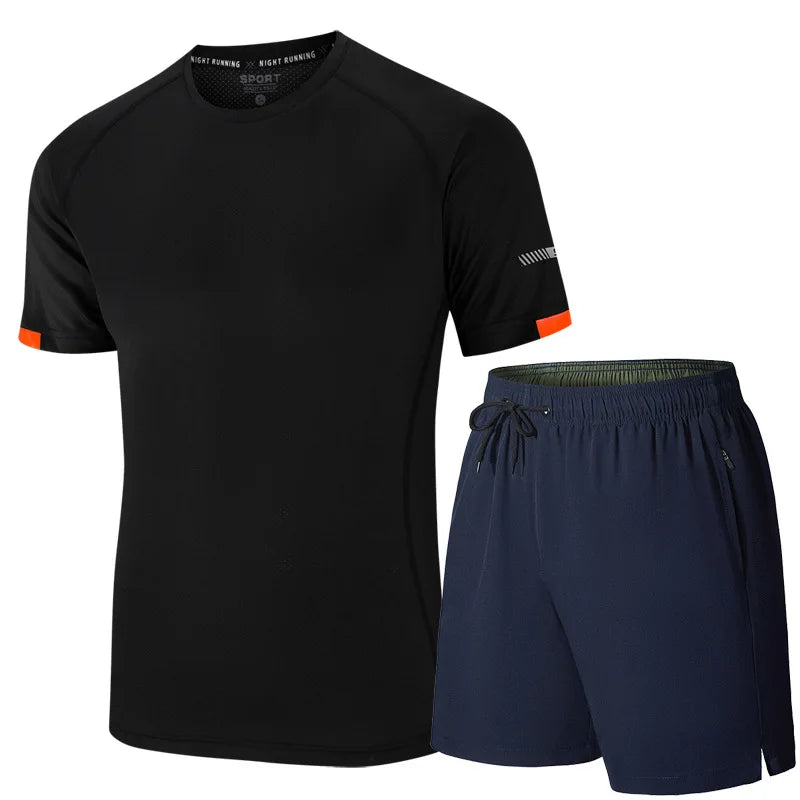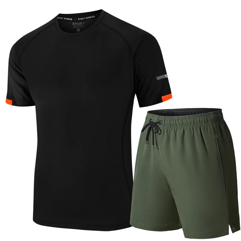 Product Description: Gear up for summer workouts with the Men's Running Sets. This versatile sportswear set includes a quick-dry T-shirt and matching shorts, designed to keep you cool and comfortable during intense training sessions. Made from breathable, moisture-wicking fabric, this gym fitness tracksuit ensures optimal performance whether you're running, working out at the gym, or engaging in sports activities. The lightweight material and modern design provide a perfect blend of style and functionality, making it an essential addition to your athletic wardrobe.