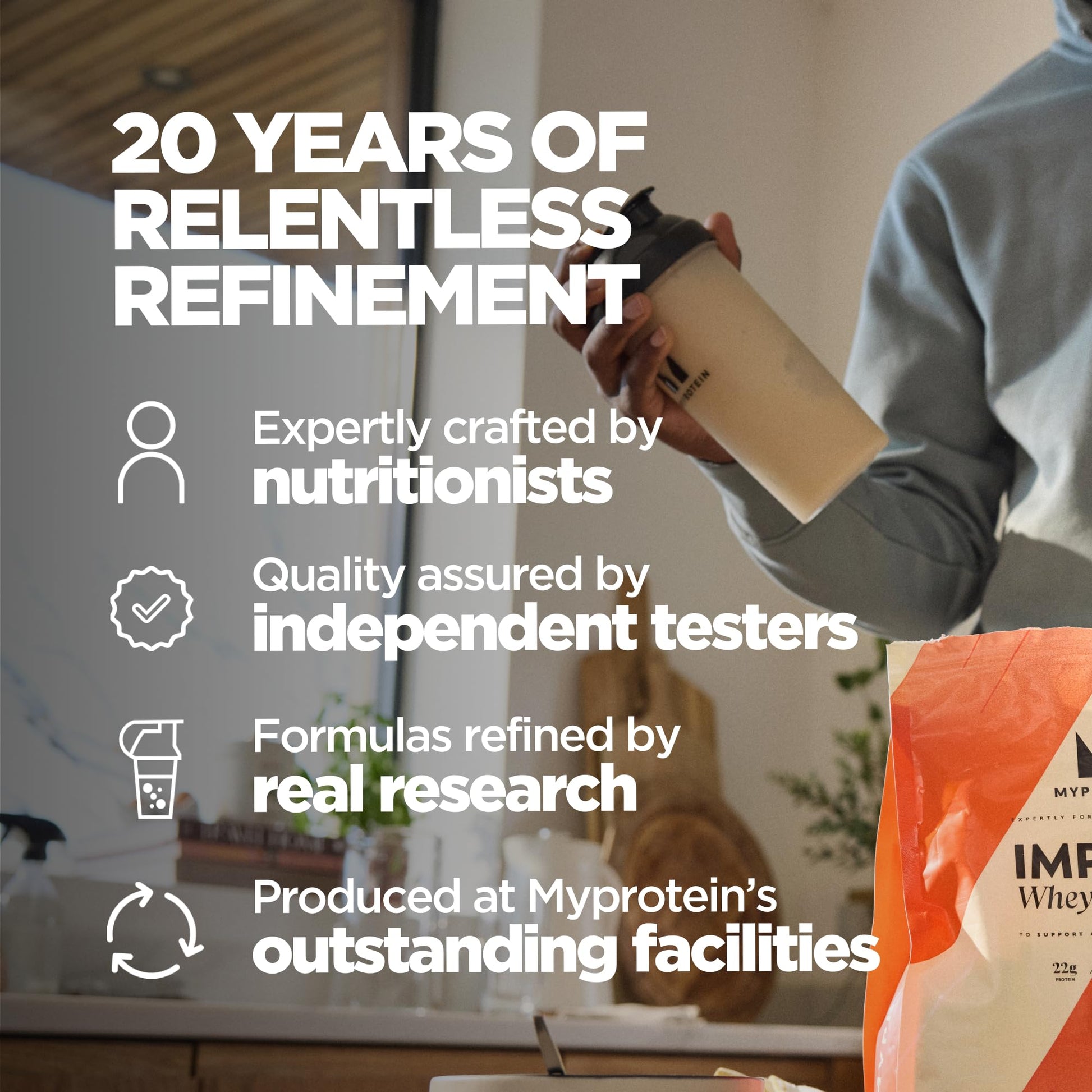 From The UK's No.1 Protein Brand – Trusted by millions worldwide, Impact Whey Protein has been a bestseller for over 20 years. Designed by expert nutritionists, it's the protein choice for elite athletes and everyday fitness enthusiasts alike. Join the winning team and taste why champions choose Impact.