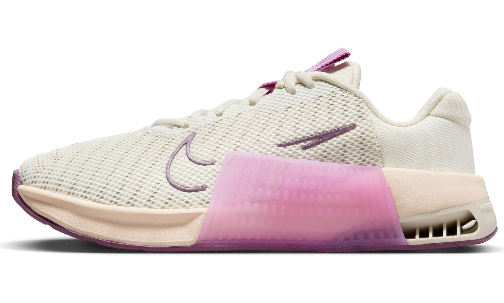 Chase the clock and crush your goals in the NIKE Women's W Metcon 9 Sneaker—the training powerhouse that refuses to quit. Engineered lighter and more breathable than ever, this beast tackles everything from intense cardio sessions to heavy lifting without breaking a sweat (well, your feet won't anyway). The grippy rubber sole hugs the ground during rope climbs and delivers serious traction whether you're in the gym or hitting the streets. Lightweight mesh paired with reinforced overlays in high-wear zones keeps durability and comfort working overtime, so you can push harder, lift heavier, and dominate every workout. Machine washable for easy care. Synthetic upper with rubber sole. Ankle shaft. Made in China. Your next PR starts here.