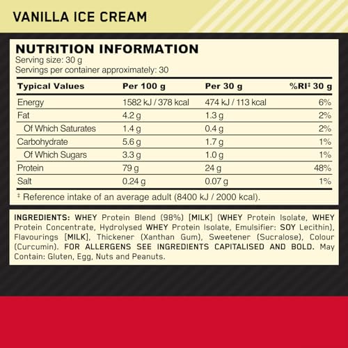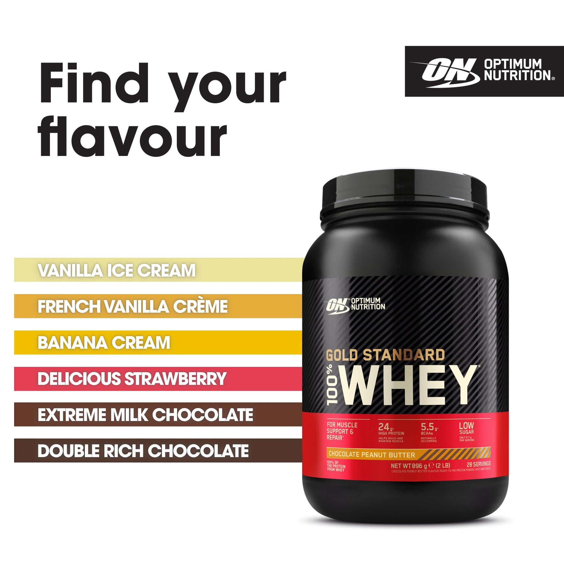 Fuel your fitness fire with Optimum Nutrition Gold Standard Whey Protein—the tasty, trusted partner for crushing workouts and building muscle! Each scoop packs 24 grams of fast-absorbing whey protein isolate plus naturally occurring BCAAs and glutamine, making recovery smoother and gains bigger. Low in sugar and fat, it’s the guilt-free boost you need whether it’s breakfast, pre-workout, or post-sweat session fuel. Choose from fan-favorite flavors like Double Rich Chocolate or Vanilla Ice Cream, or mix your own magic with the unflavored option. Easy to shake up and certified by Informed Choice, this protein powder keeps you smiling and smashing goals every step of the way!