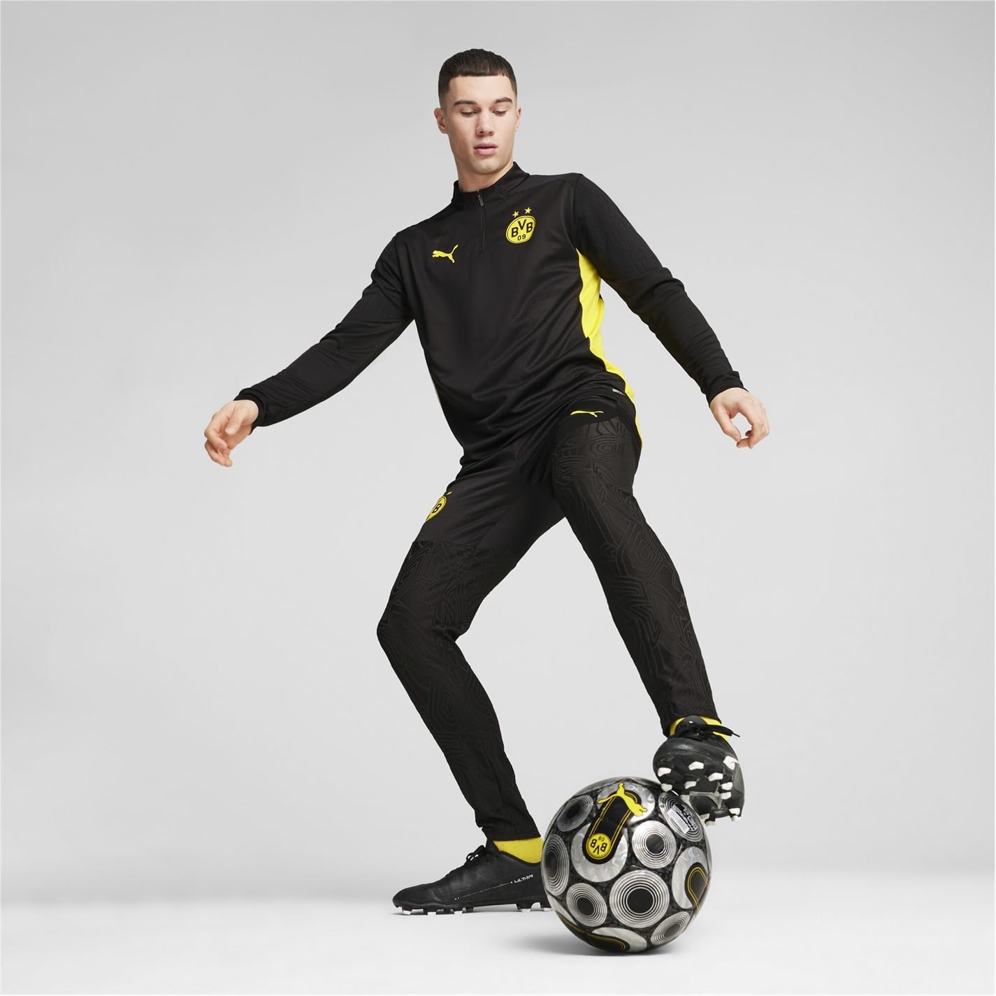 • Unleash your football passion with the Puma Borussia Dortmund Quarter Zip Training Top for Adults