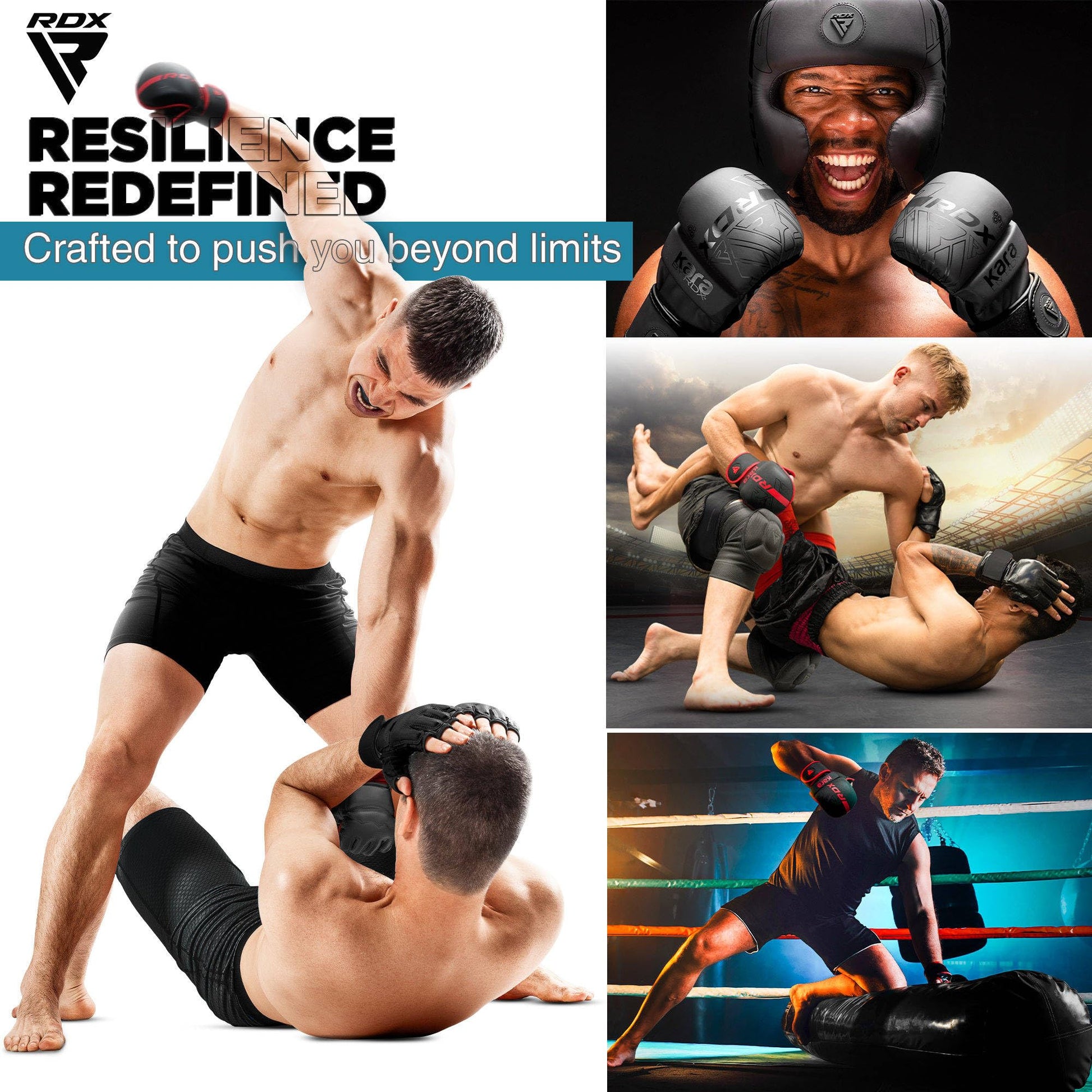The open-palm, fingerless construction is where the magic happens. You get enhanced grip for clinch control and ground work, plus the freedom to transition seamlessly between striking and grappling. Pair that with a ventilated design and sweat-wicking inner fabric, and your hands stay cool, dry, and locked in throughout intense training sessions. Securing everything is RDX's legendary 52cm triple-lock strap featuring three hook-and-loop patches.