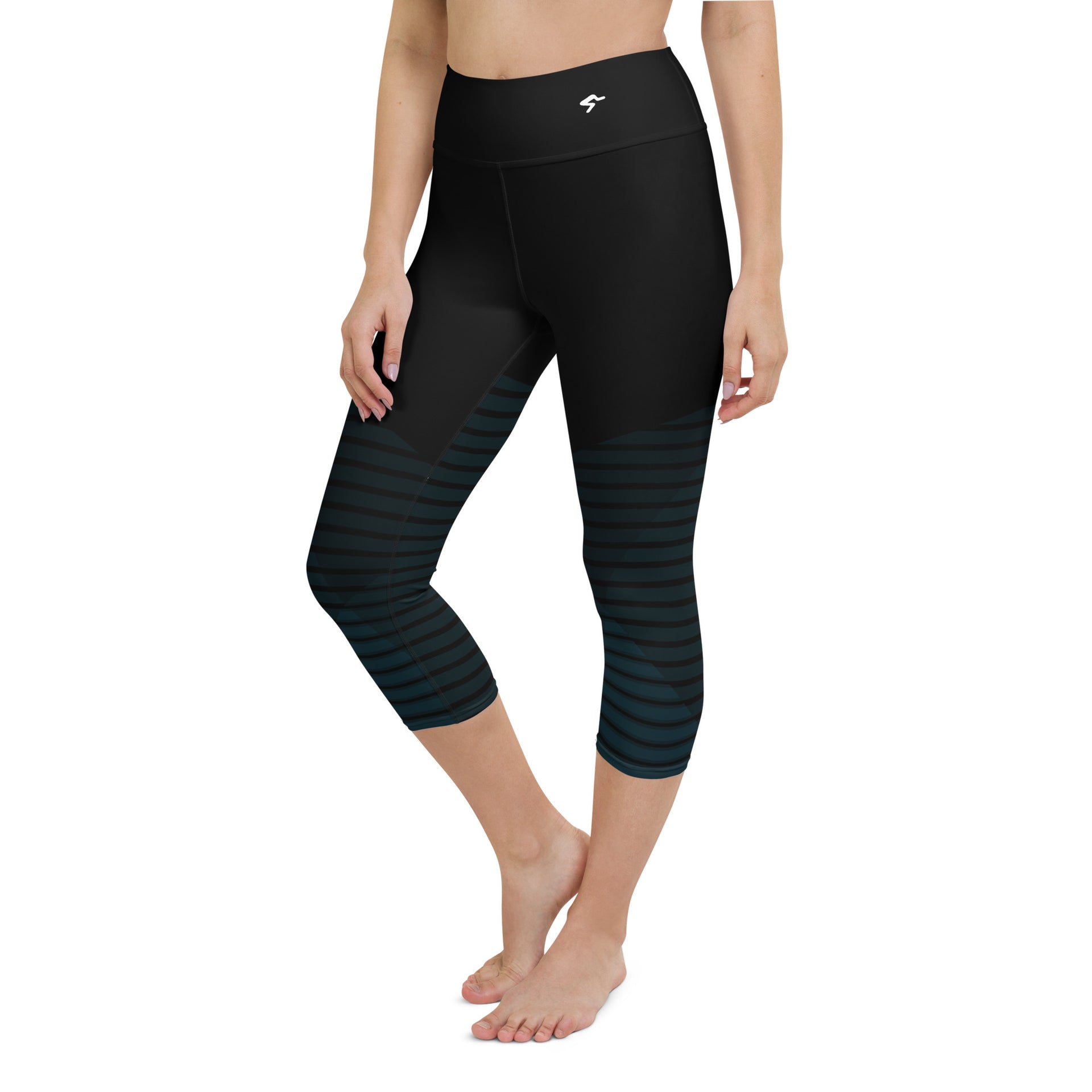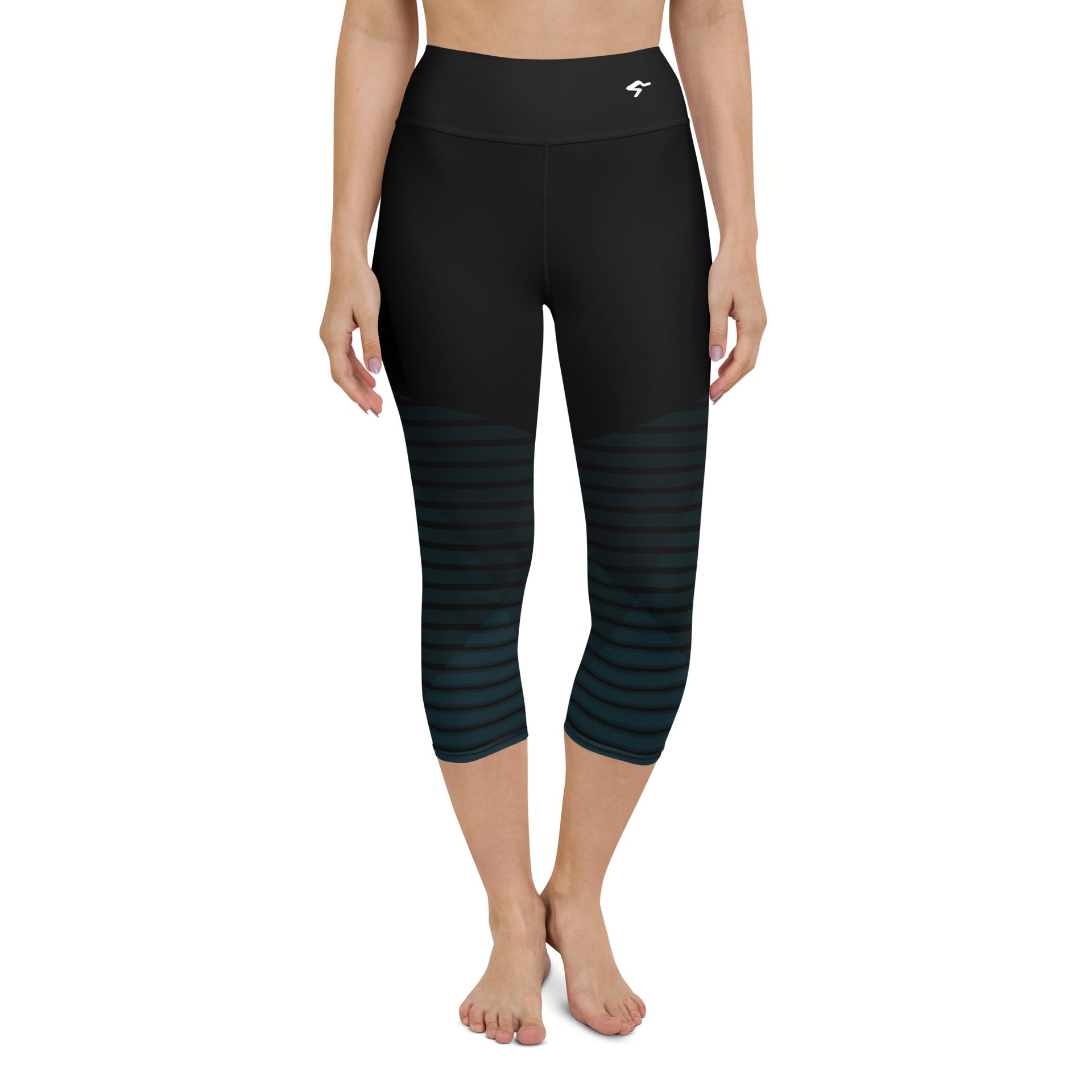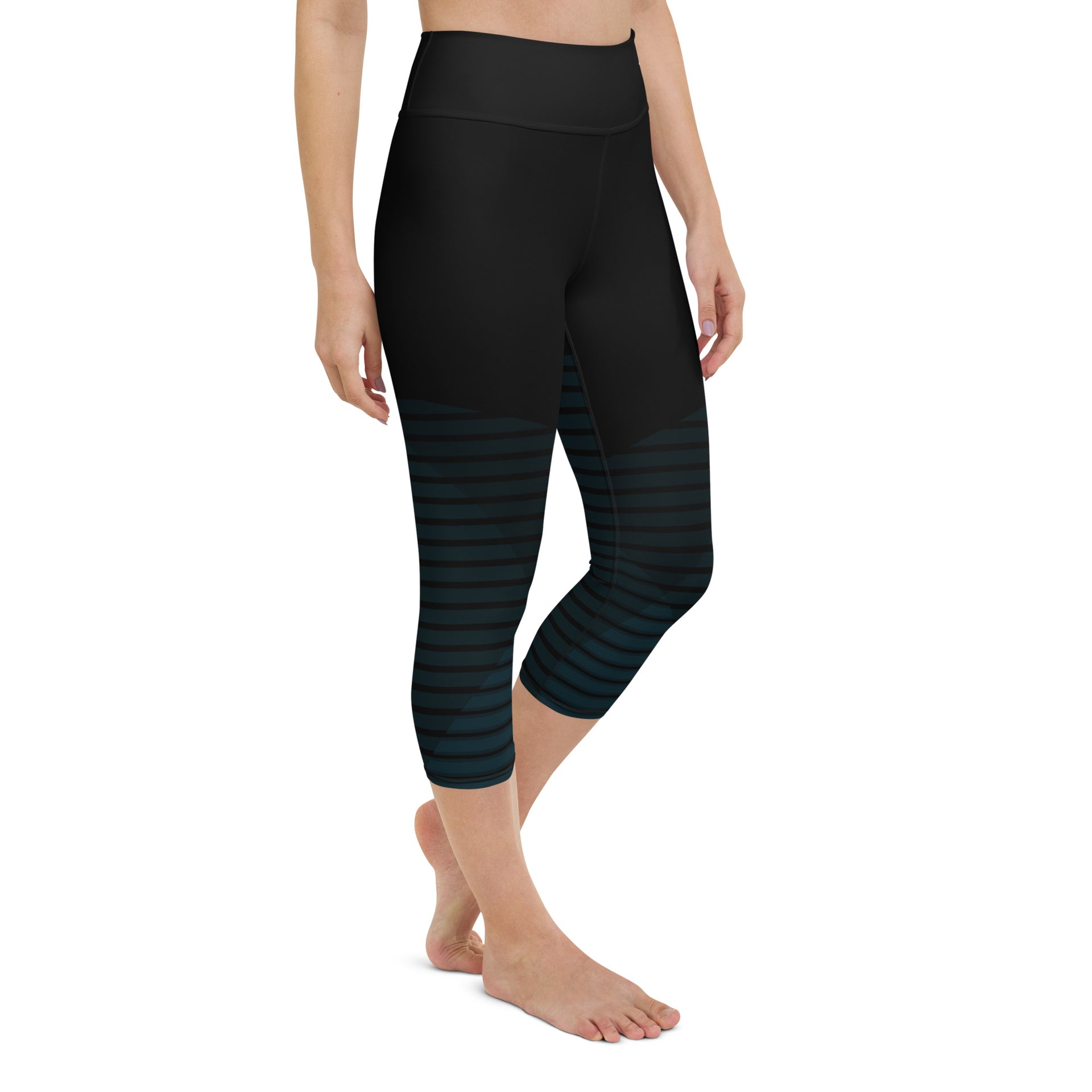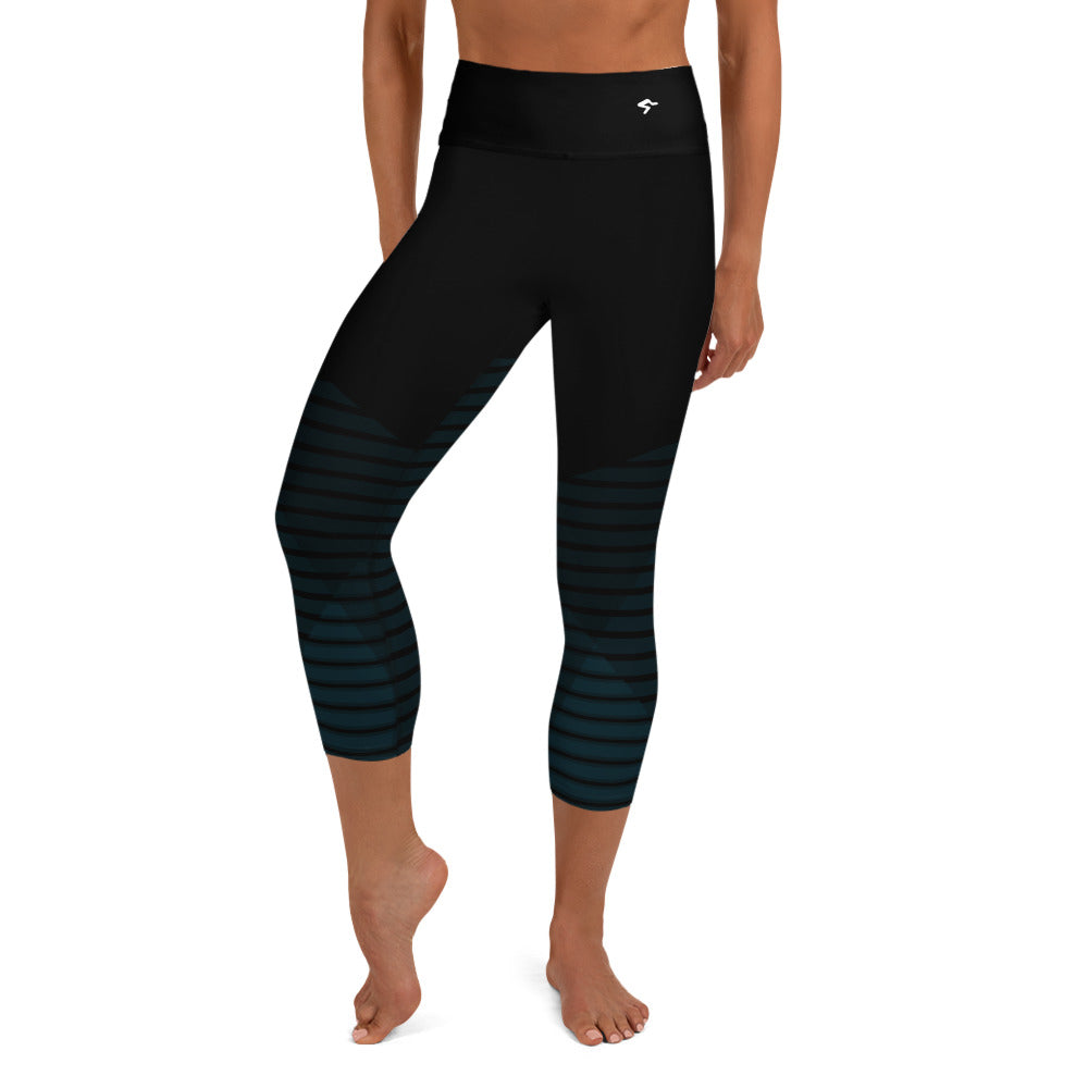 The Gymbum UK Blue Horizon QuickDry Yoga Capri Leggings with a high, elastic waistband are the perfect choice for yoga, the gym, or simply a comfortable evening at home.