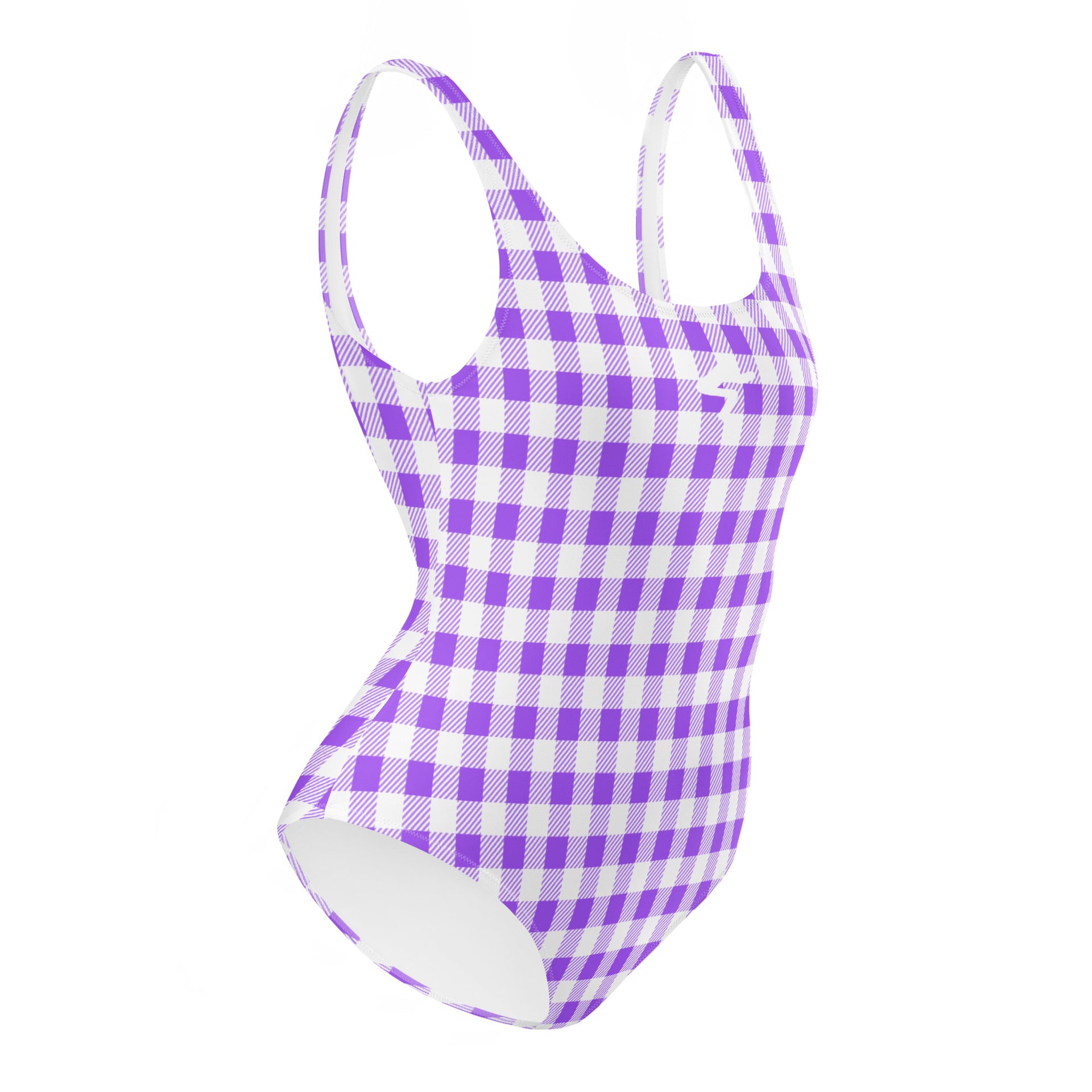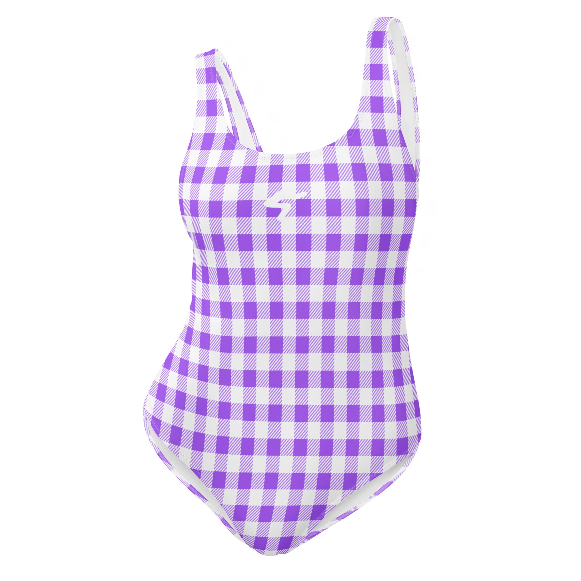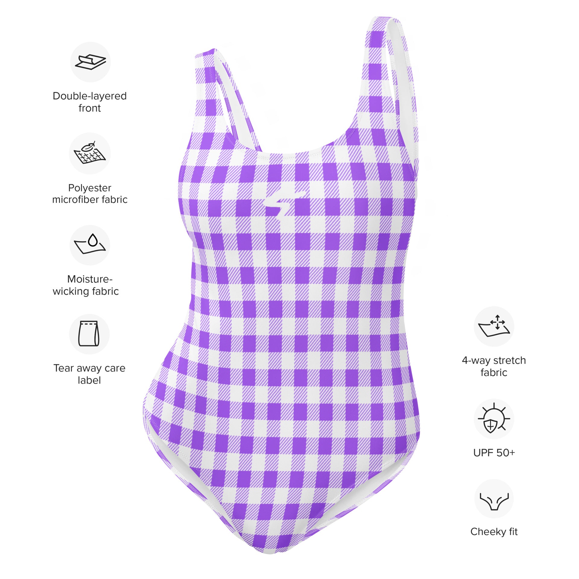 The Gymbum UK Purple Plaid Pattern One-Piece Swimsuit