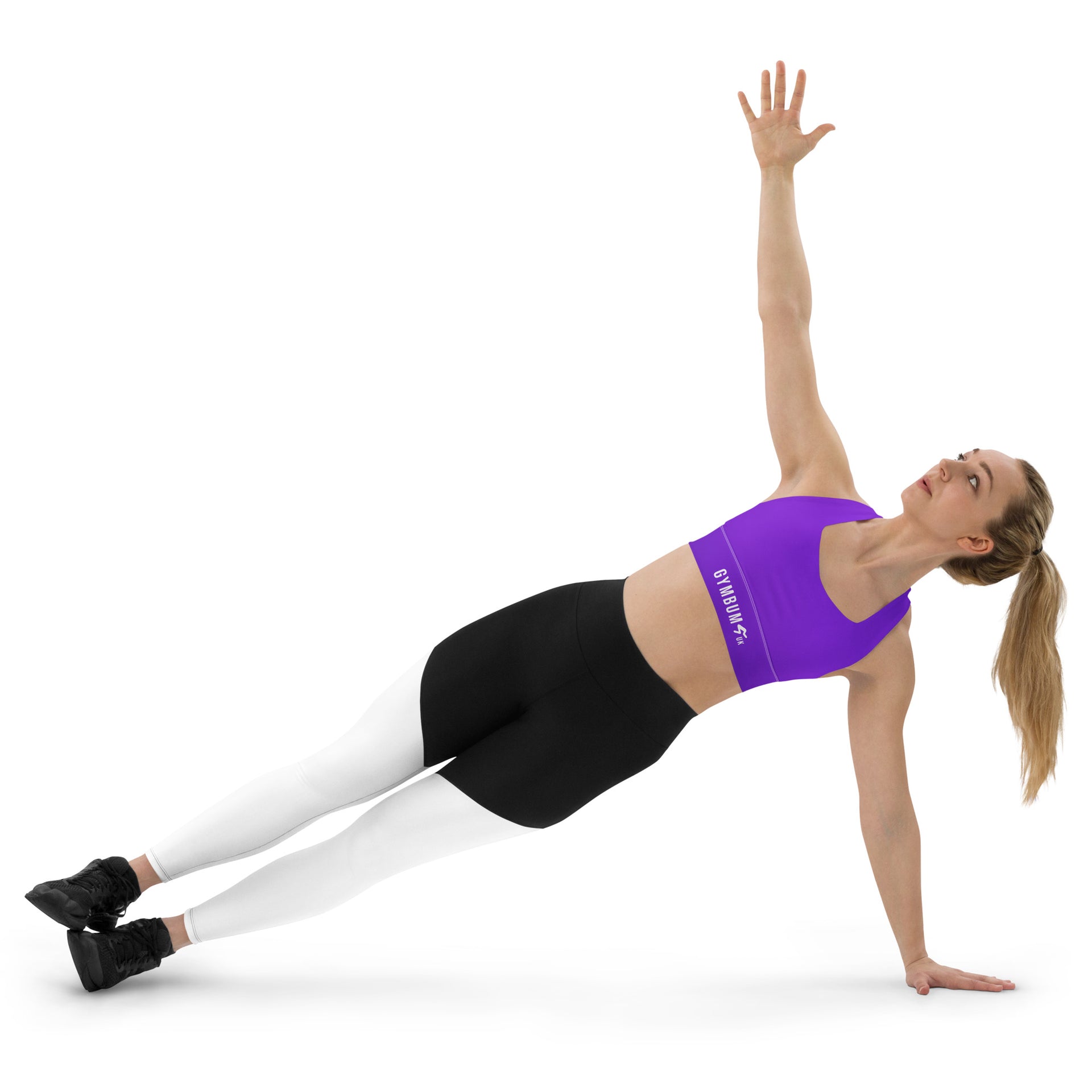 The Gymbum UK Purple QuickDry SupportPro Compression Sports Bra Compression Sports Bra is the perfect workout top for exercising. The compression fabric along with double-layered front and shoulder straps ensures great support while running, jumping, or pumping iron. Wear it while exercising or style it as a streetwear top on sunny days!