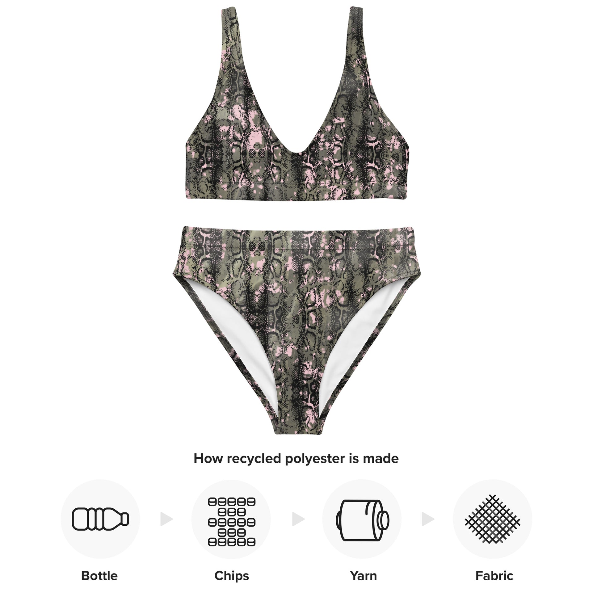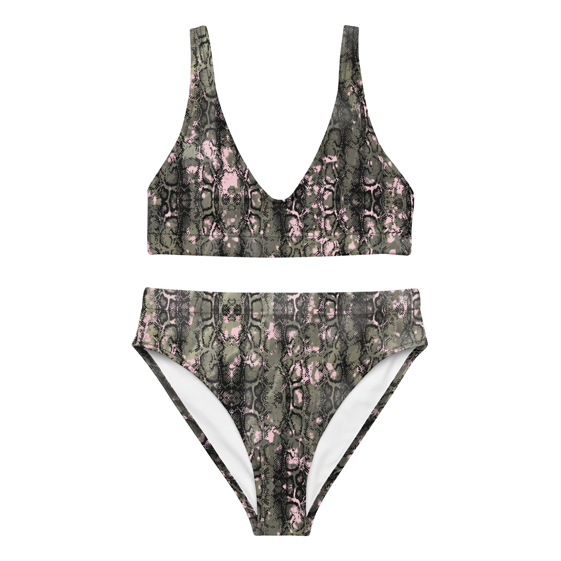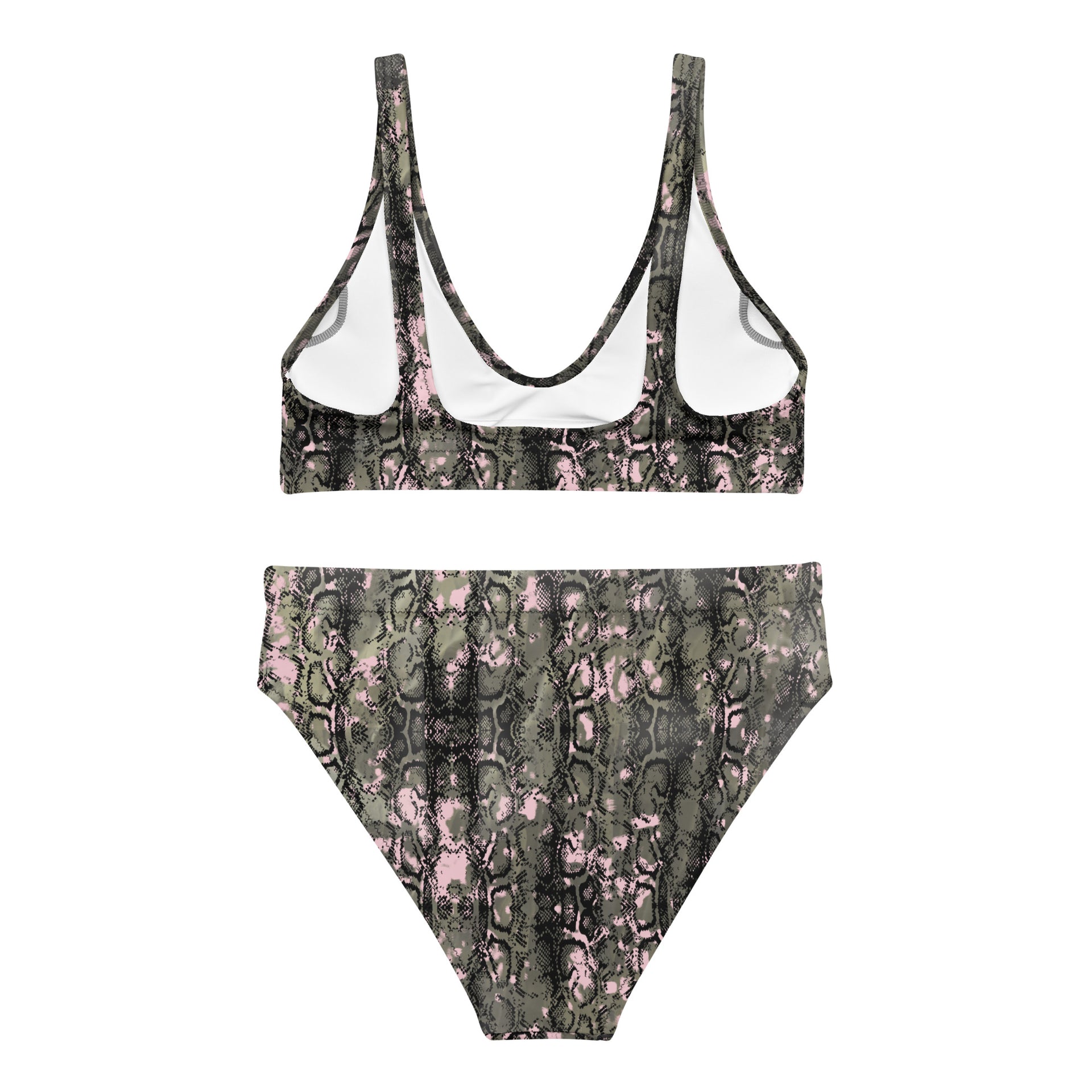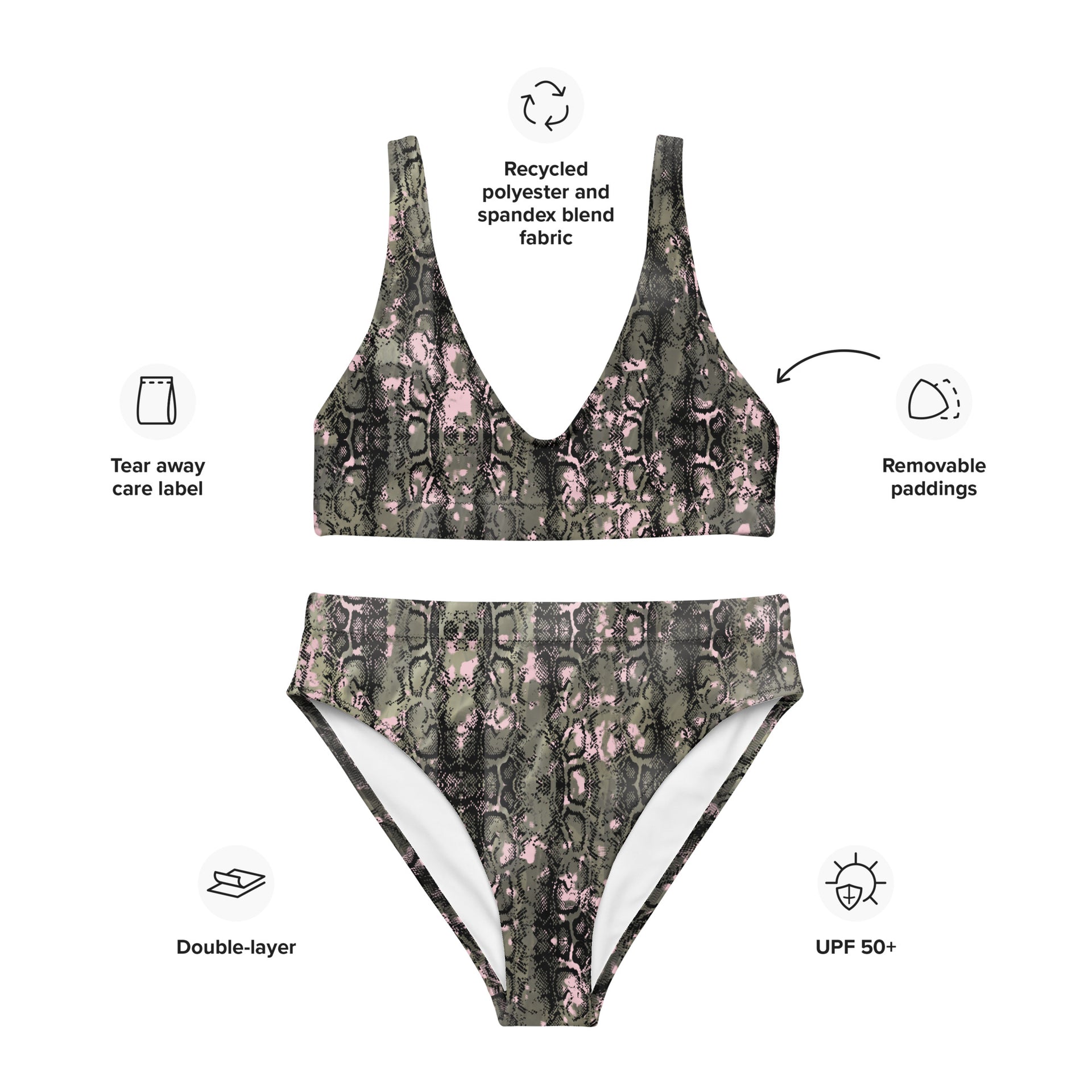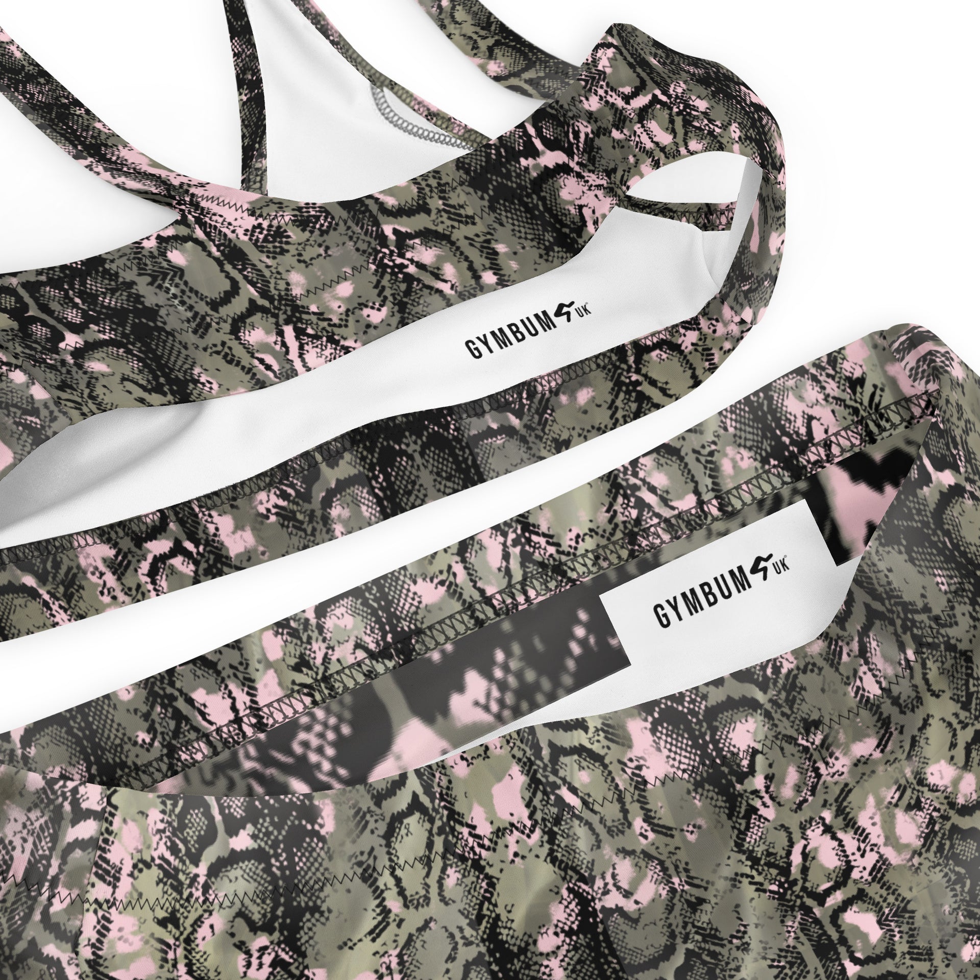 The Gymbum UK QuickDry Black Pink Snake Print High-Waisted Bikini