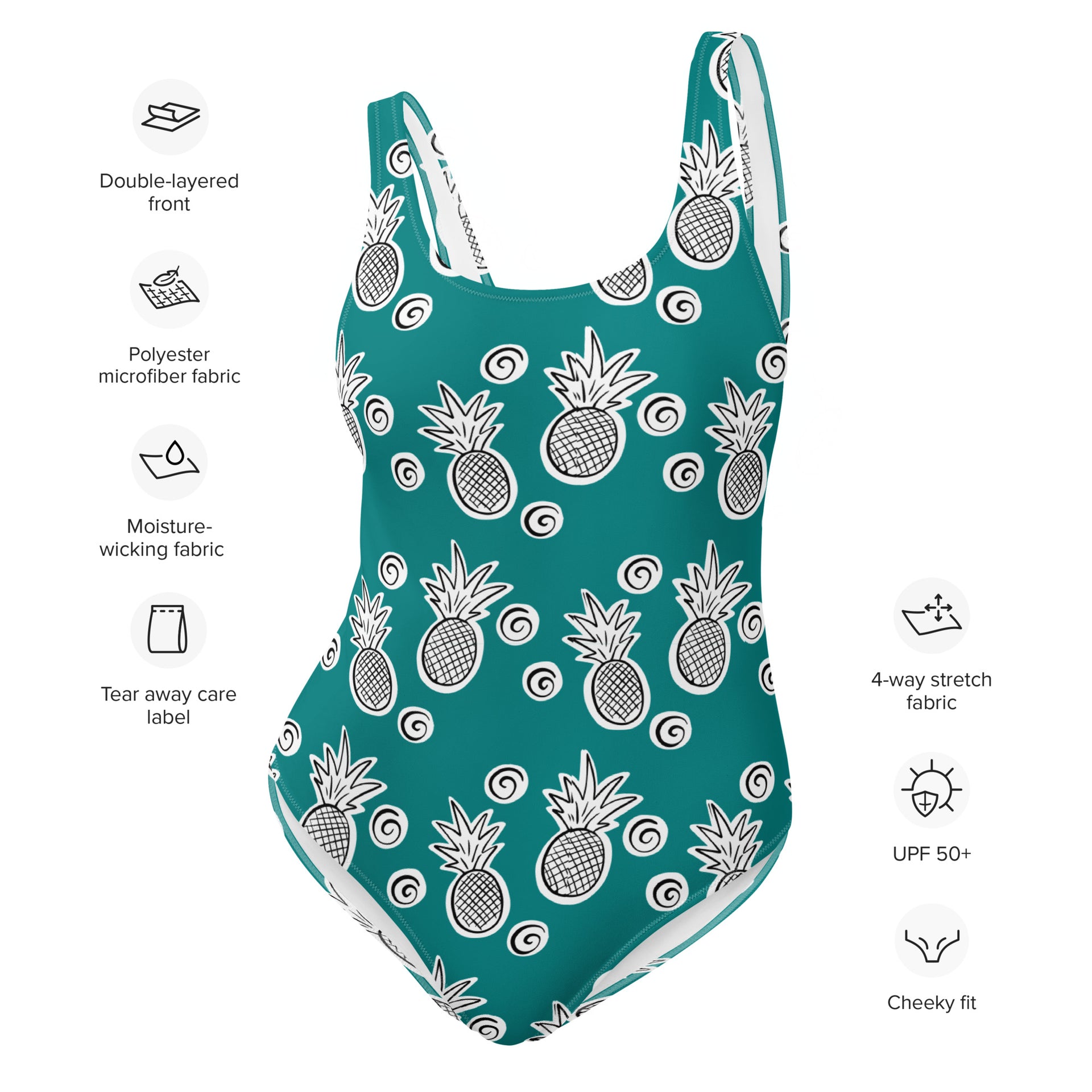 The Gymbum UK QuickDry Pineapple Dusky Teal One-Piece Swimsuit is made especially for you as soon as you place an order, which is why it takes us a bit longer to deliver it to you. Making products on demand instead of in bulk helps reduce overproduction, so thank you for making thoughtful purchasing decisions!