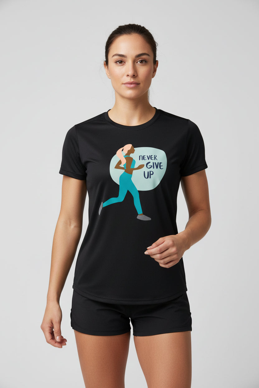 The Gymbum UK QuickDry Women's Never Give Up Performance Tee