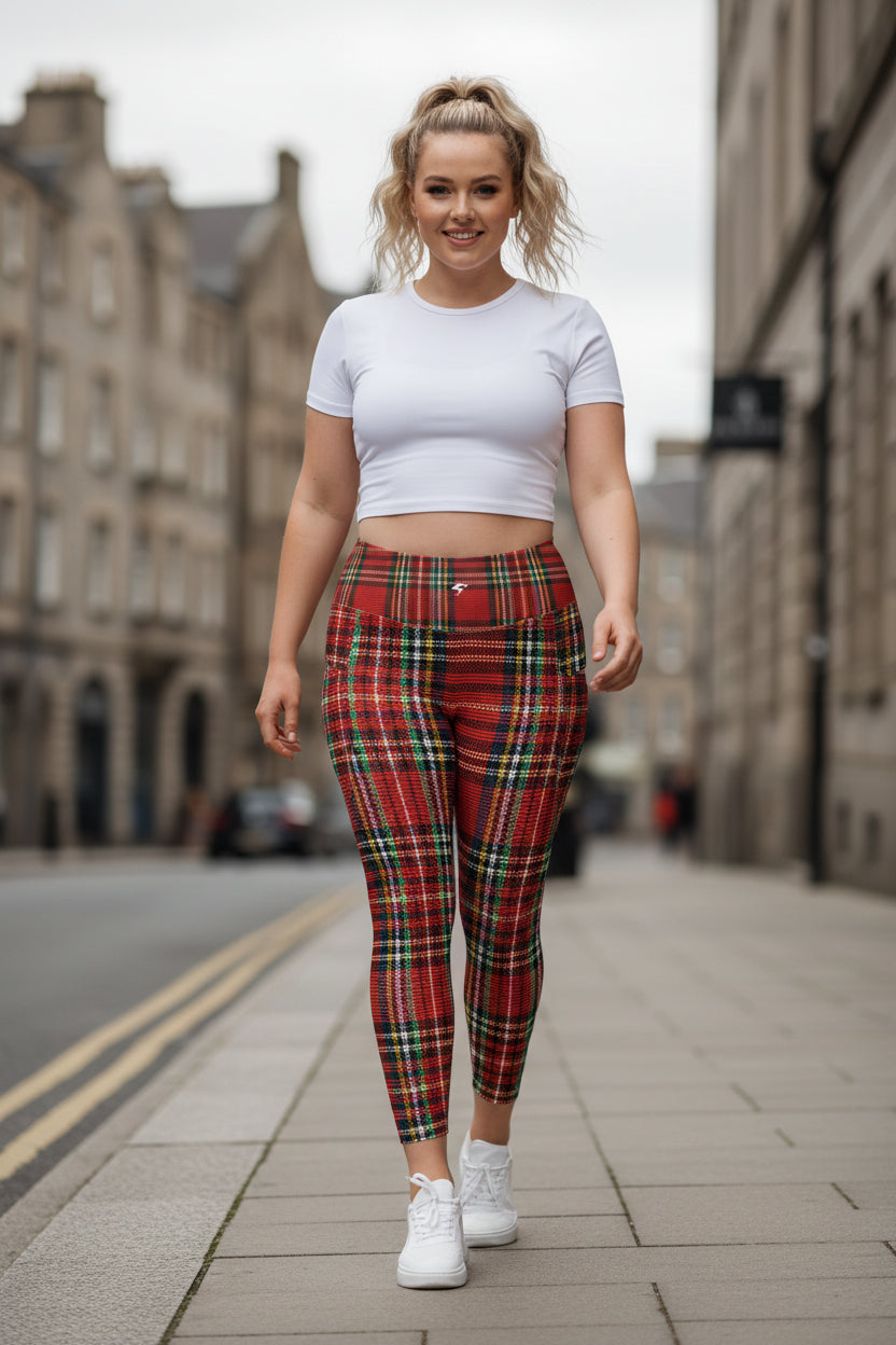 GymBumUK Red Tartan Pocket Leggings