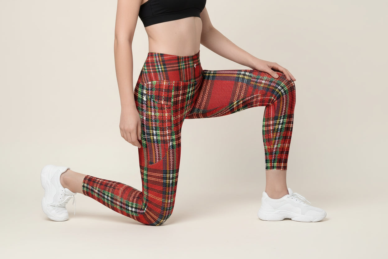 The Red Tartan Pocket Leggings combine technical performance features with distinctive aesthetic appeal. Advanced quick-dry technology efficiently manages moisture during training, maintaining comfort across varied exercise intensities and modalities. The distinctive red tartan pattern provides visual interest while maintaining professional functionality suitable for gym, yoga, and casual applications. Functional side pockets offer practical storage for personal items, eliminating the need for supplementary carrying solutions during training sessions. The soft, responsive fabric delivers optimal stretch and movement accommodation, supporting natural body mechanics throughout diverse physical activities. Engineered for versatility, these leggings perform effectively during strength training, cardio work, yoga practice, and everyday wear. The integration of moisture-management technology, practical pocket design, and refined visual presentation creates a comprehensive activewear solution. This design successfully balances technical performance requirements with contemporary style considerations, offering reliable functionality and enduring aesthetic appeal for individuals seeking quality construction in their training wardrobe.
