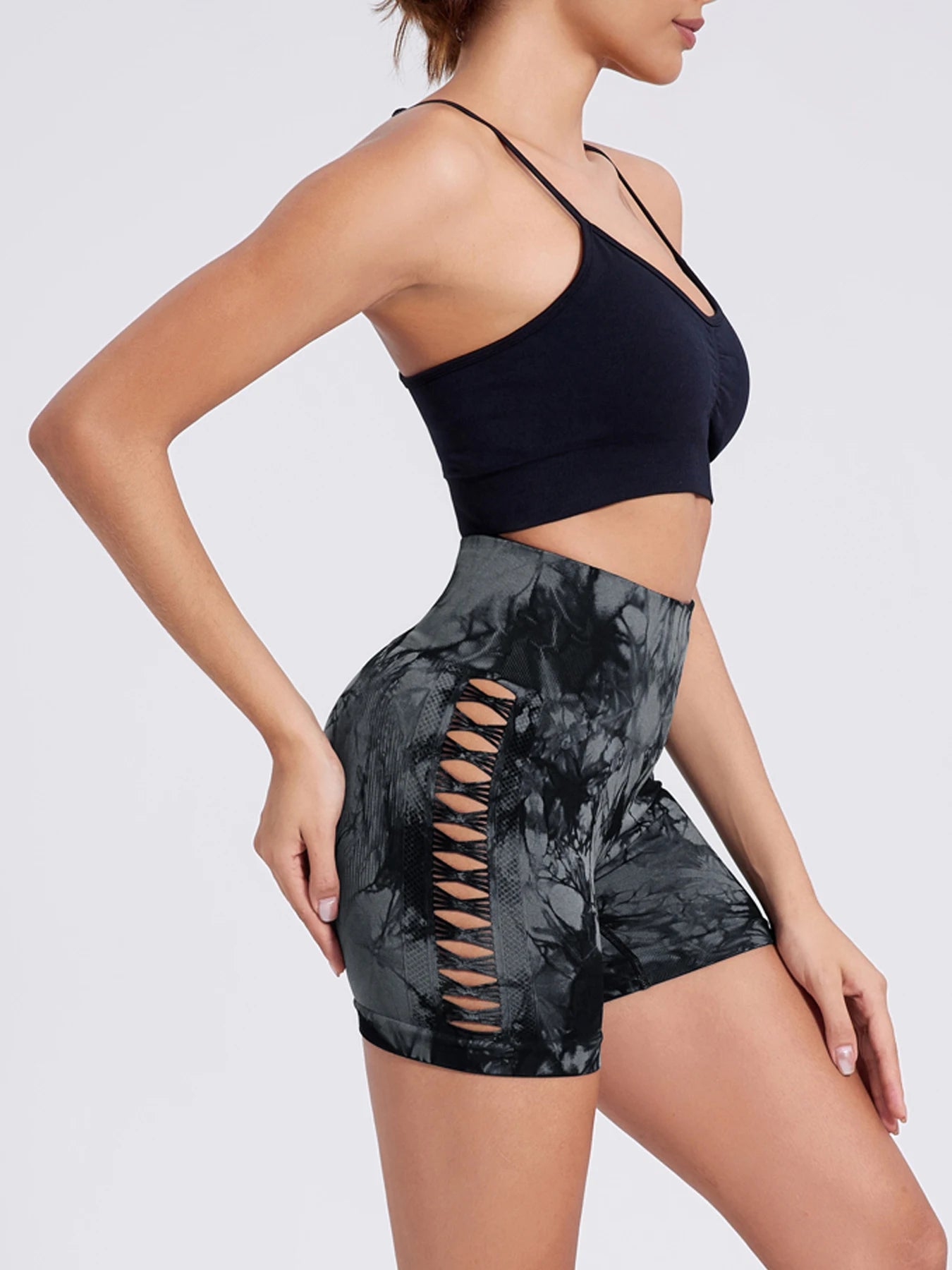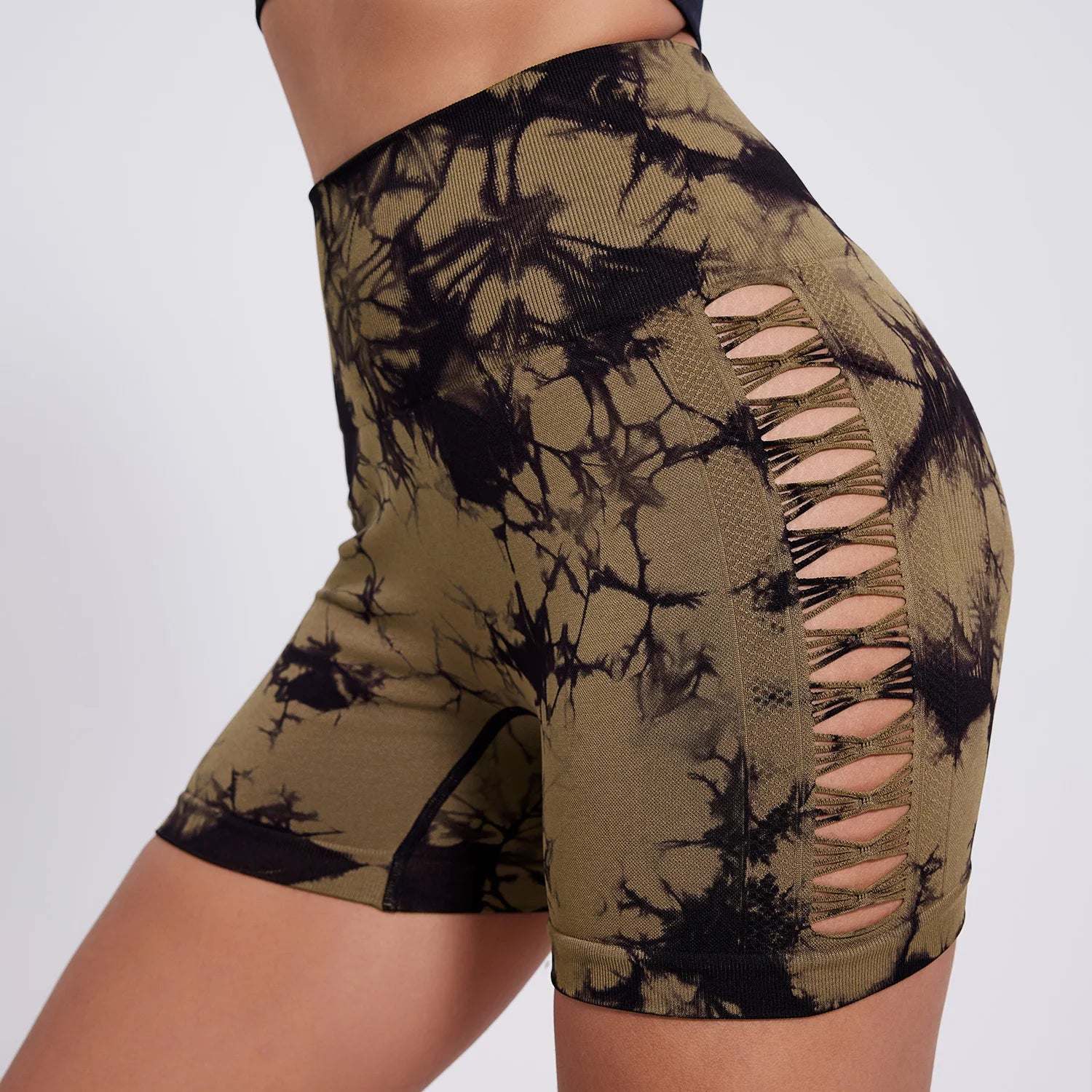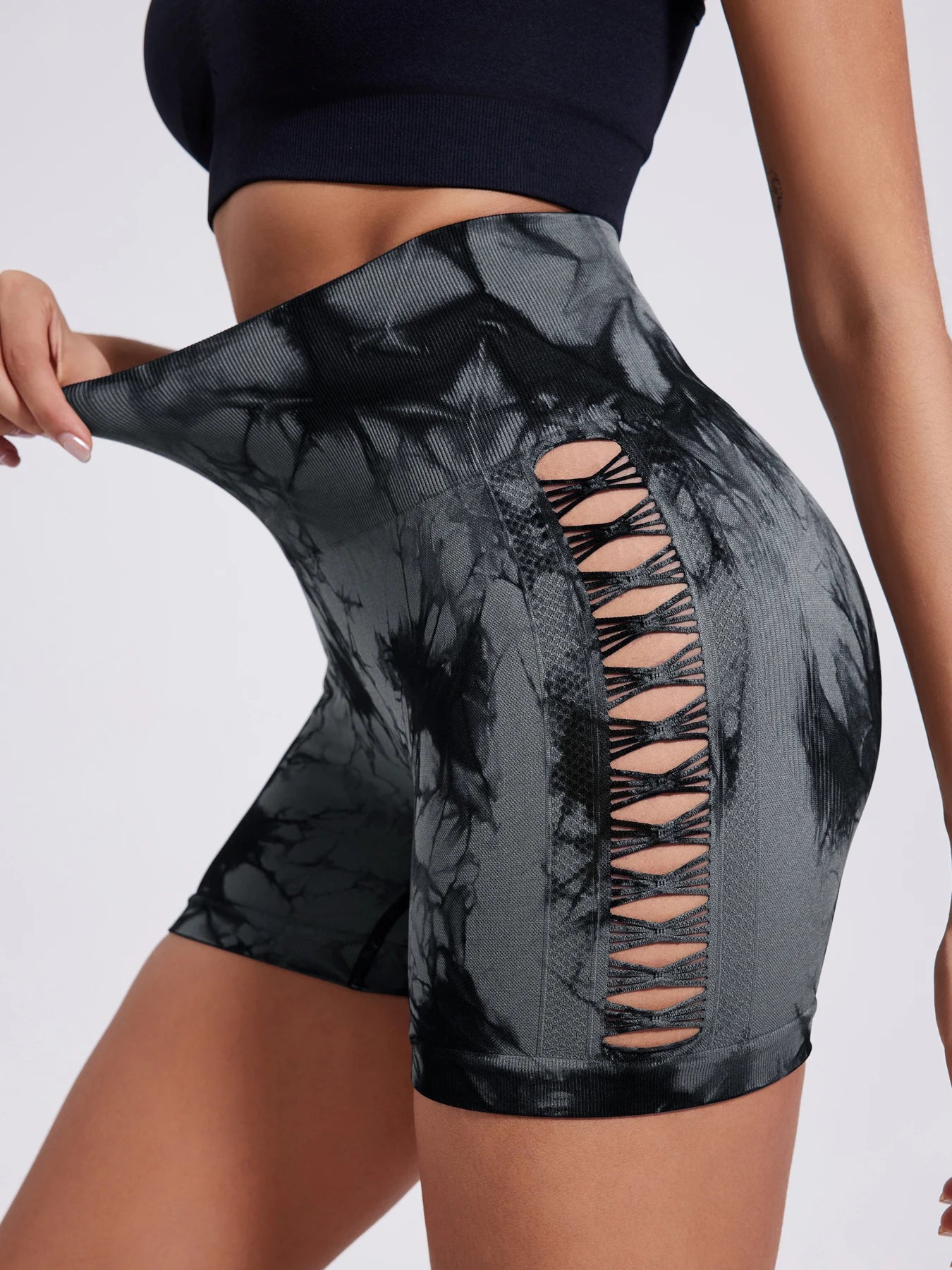 Tie Dye Butt Lifting Hollow Out Gym Leggings and Shorts for Women - High Waist