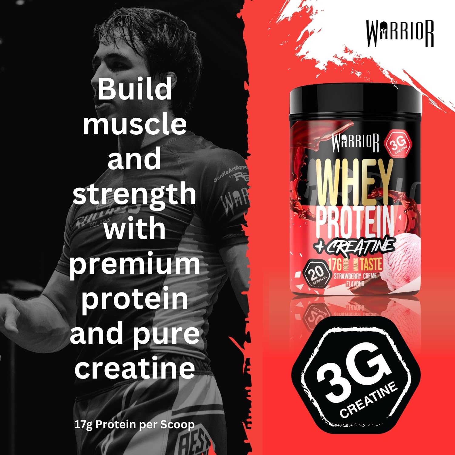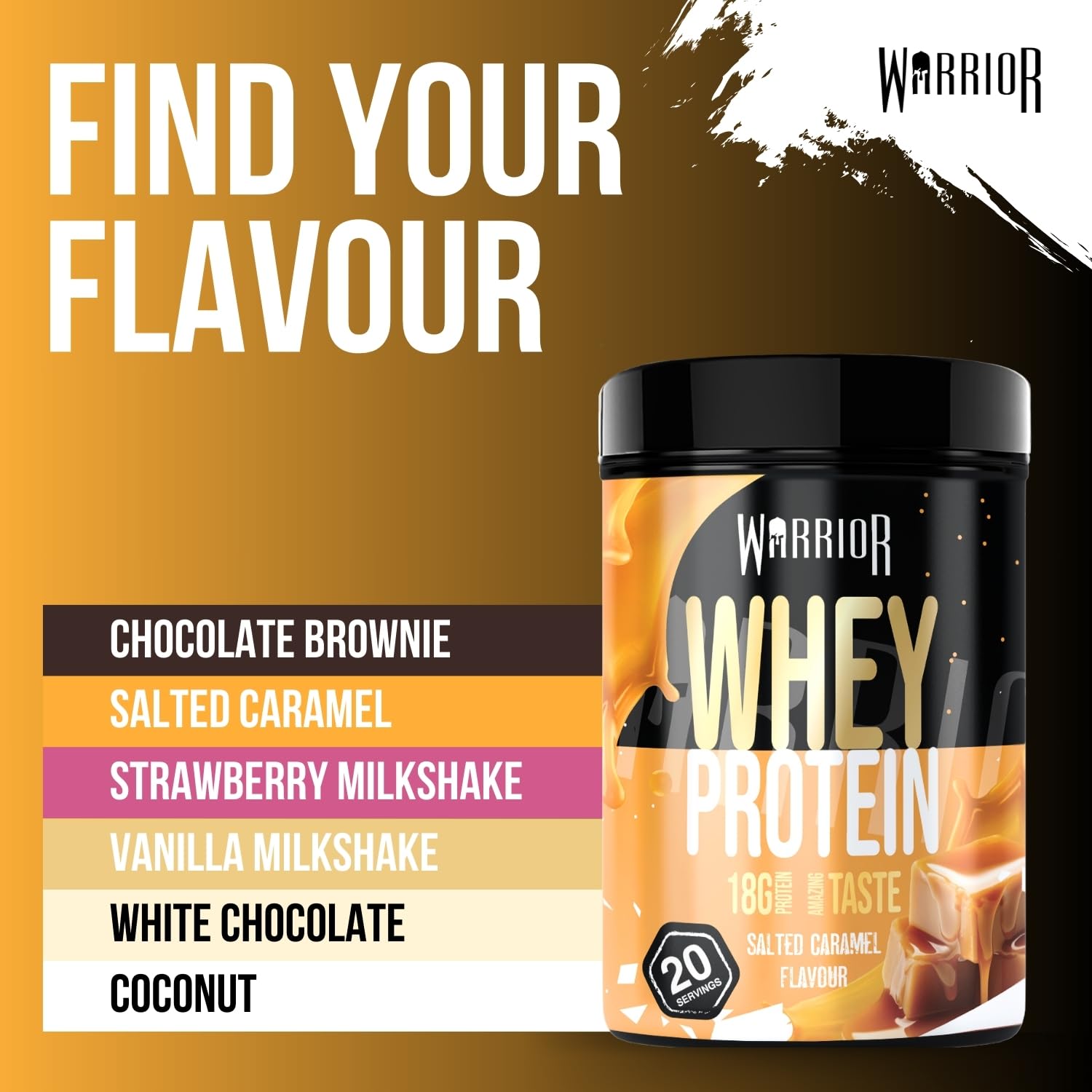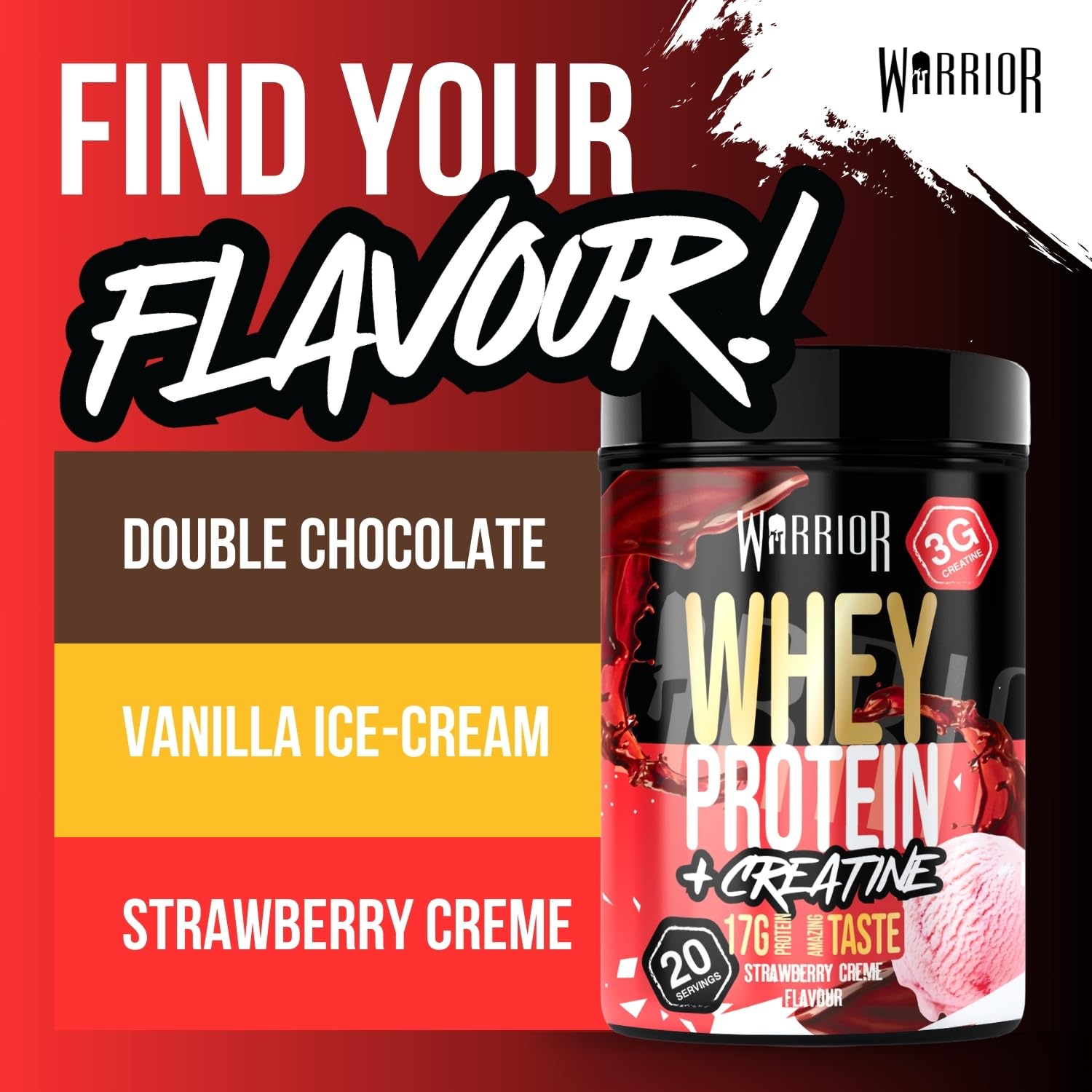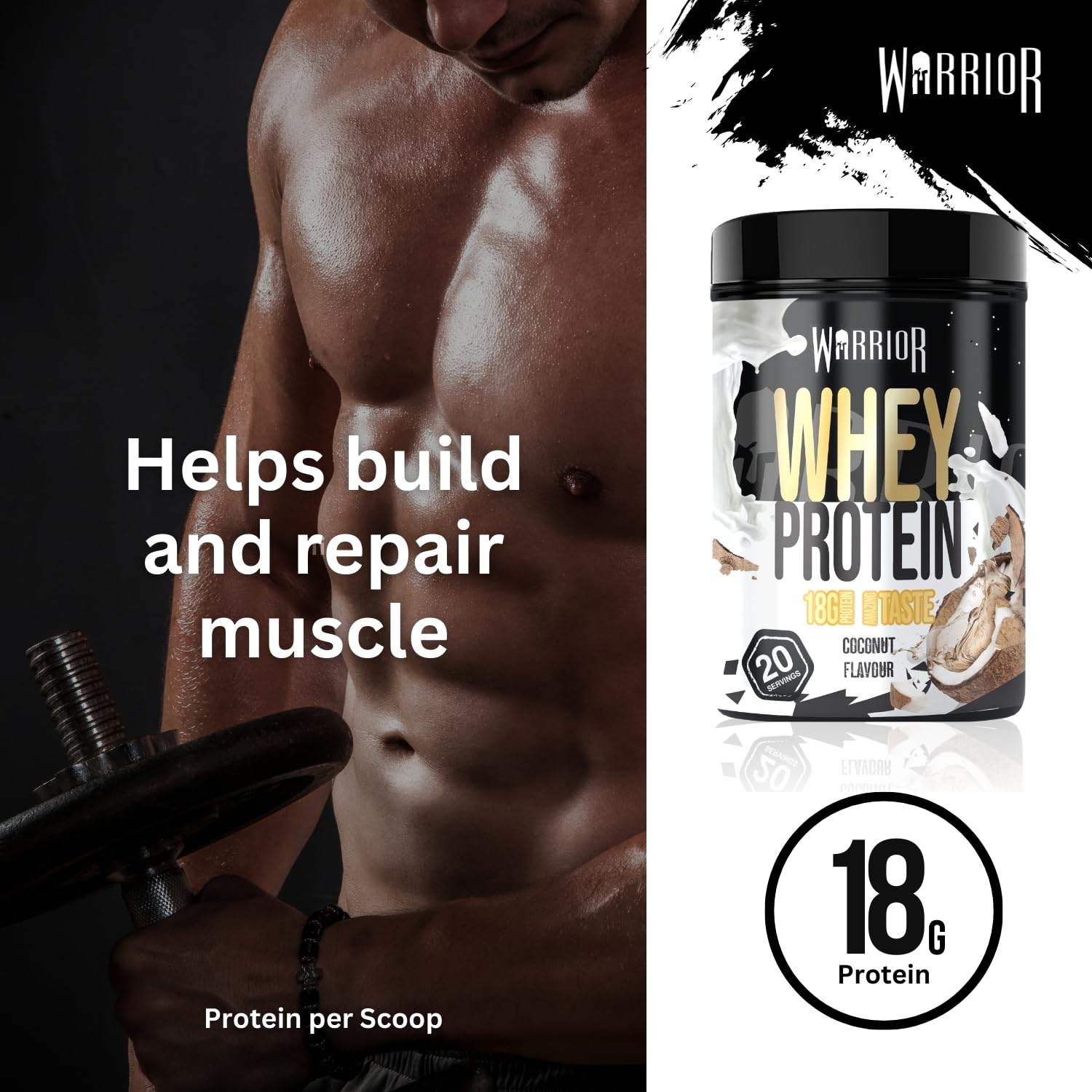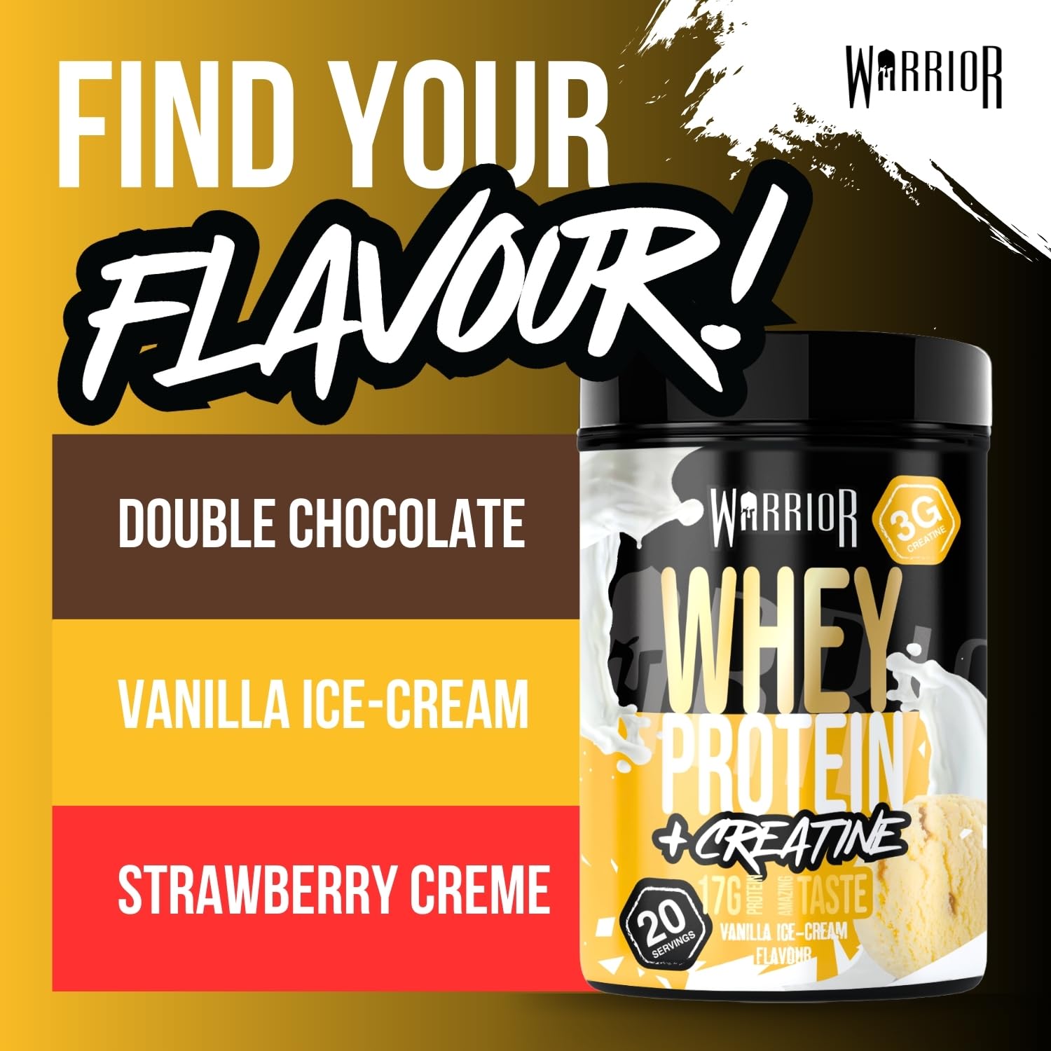 Fuel your inner champion with Warrior Whey Protein Powder 500g—a flavorful boost for muscle growth and speedy recovery. Each 50g scoop packs 36g of premium Whey and Milk protein, powering your muscles while keeping carbs and sugars low, ideal for shredding fat or sculpting lean muscle. Shake it up post-workout or whenever hunger strikes for a creamy, satisfying treat that outshines dull protein drinks. Choose from delicious flavours like Double Chocolate, Salted Caramel, or Vanilla Ice Cream, perfect for blending into smoothies, pancakes, or just sipping solo. Customise your servings to meet your training goals and conquer every day like a true warrior!