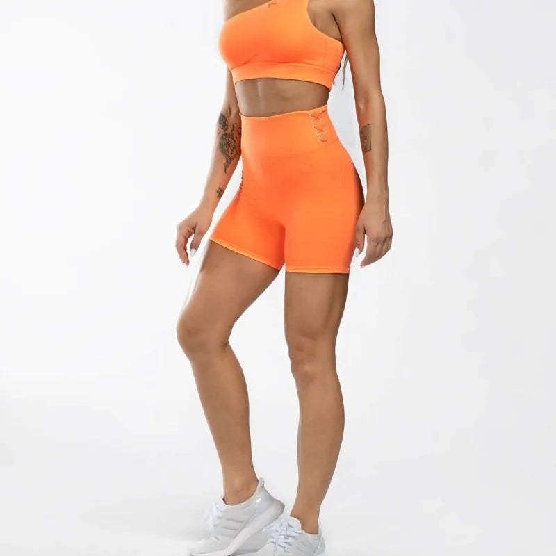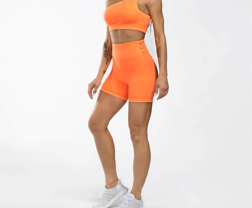 Women's Active Wear One Shoulder Top Sport Short Pants Set